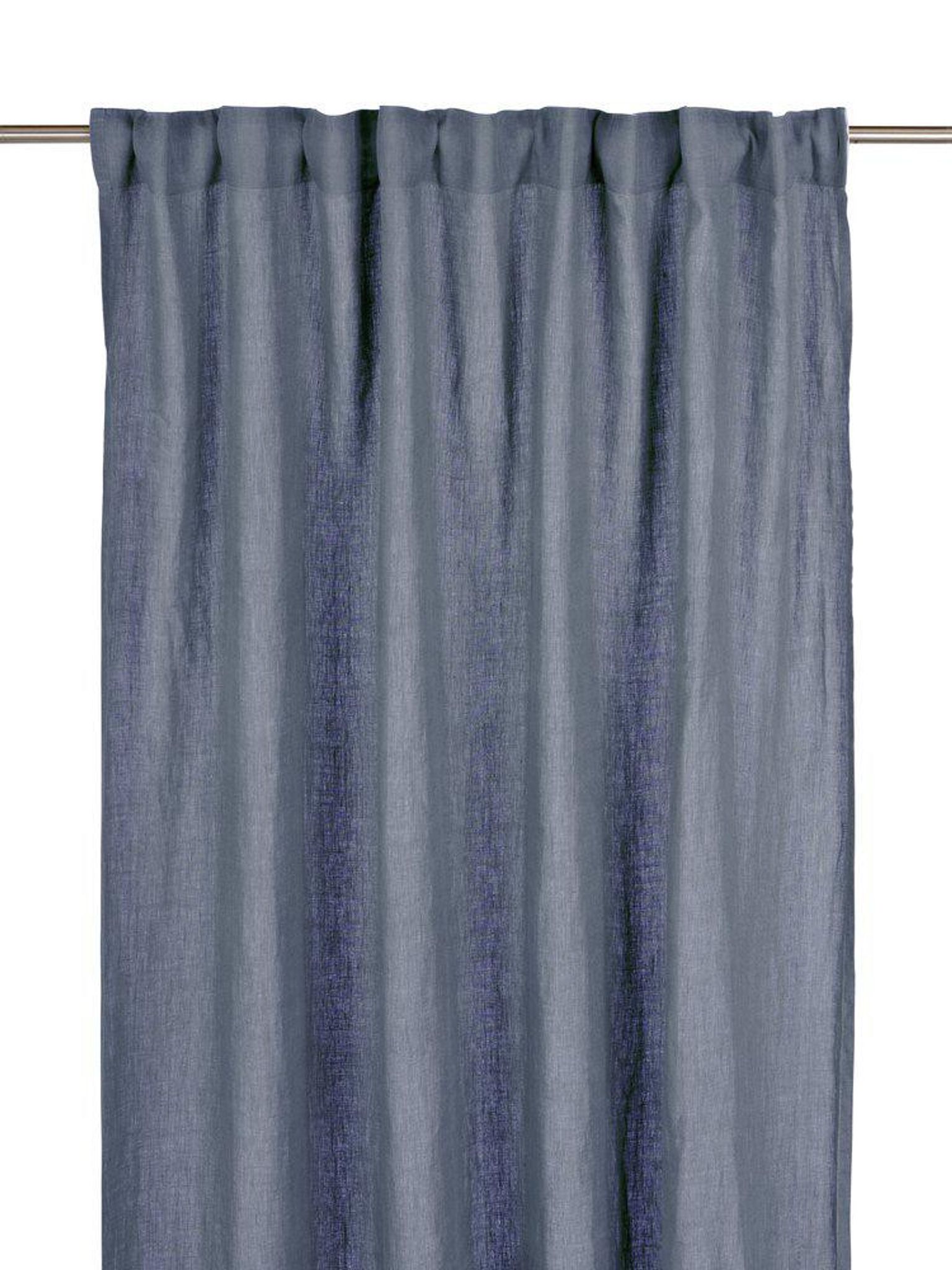 Tvätta i maskin på 40 grader. Undvik klorblekmedel och torktumling. Stryk med mellanhög temperatur för bästa resultat. Gardinerna har en enfärgad, subtil blågrå nyans som fungerar väl i många rum.