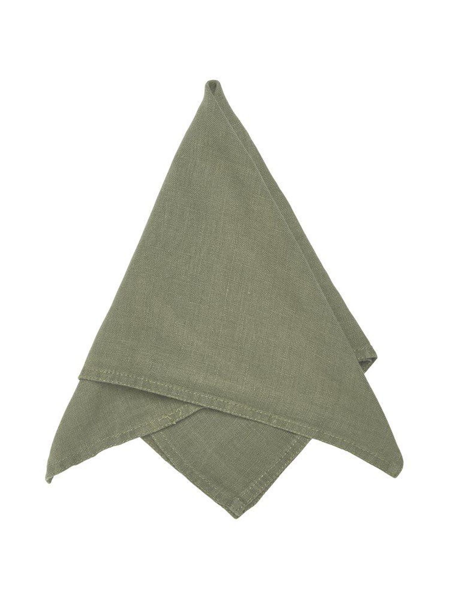 Grön linne-servett Julie 45x45 cm i mossa, 40x34 trådtäthet och Öko-Tex-certifierad. Snygg och praktisk servett som håller länge, passar din dukning och funkar bra vid vardag eller fest.