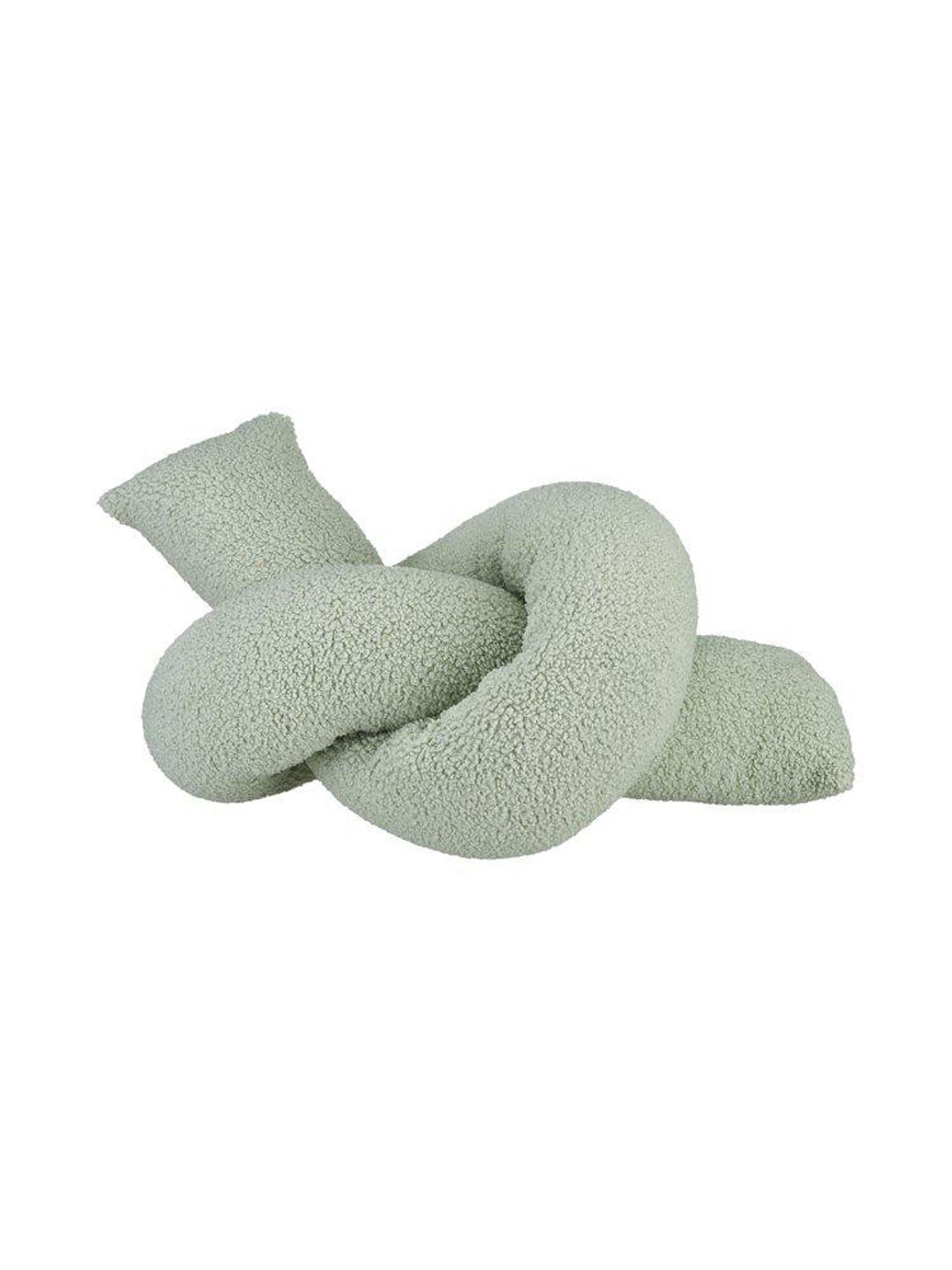 Den knutformade turkosa prydnadskudden kombinerar en välgjord design med praktisk användning. Den blir en dekorativ punkt som gör din soffgrupp eller säng mer inbjudande, samtidigt som den ger stöd när du lutar dig tillbaka eller vill koppla av. Den mjuka ytan gör det bekvämare att mysa i vardagen.