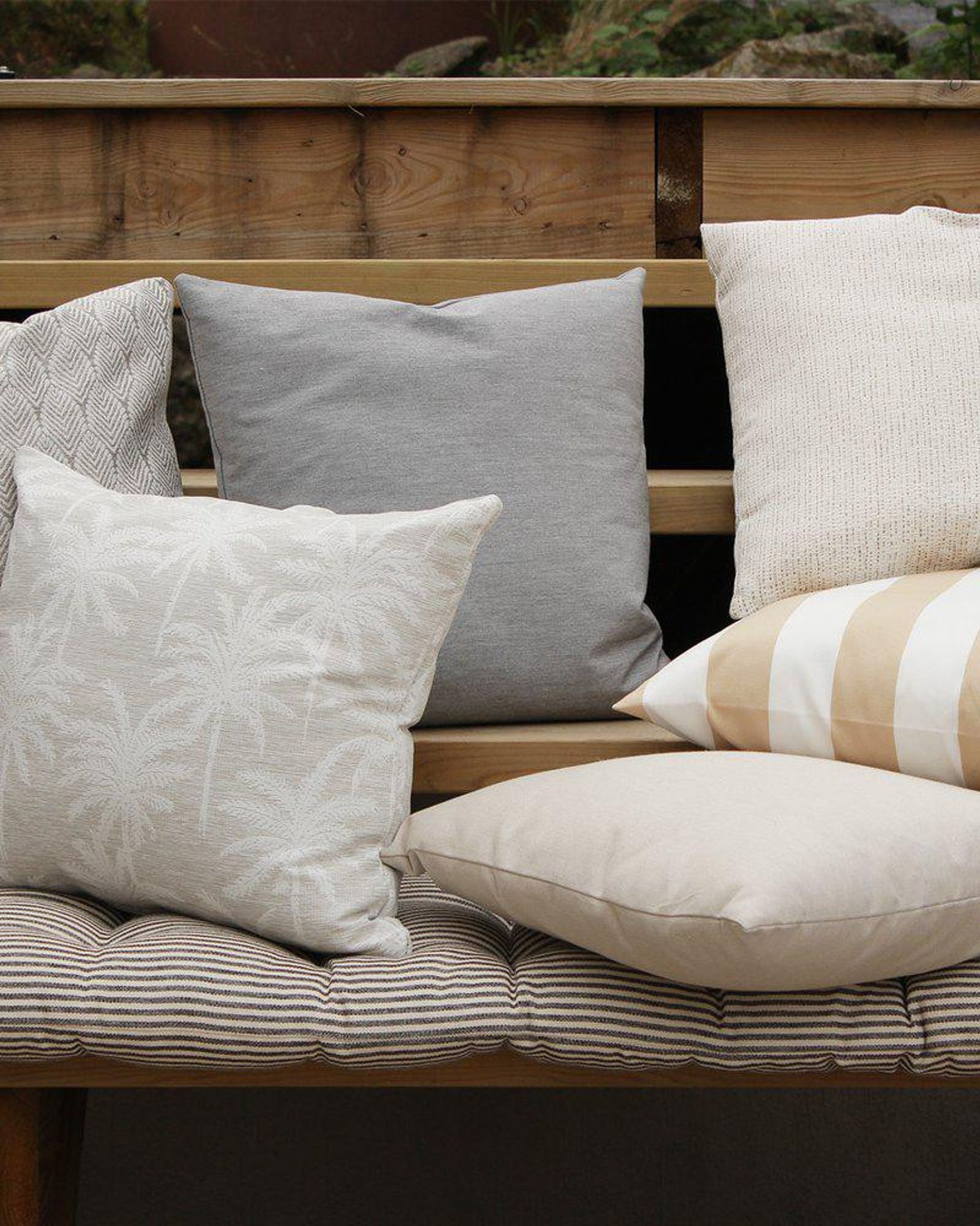 Kuling beige kuddfodral för utomhusbruk 44x44 cm i väderbeständigt tyg med UV-skydd och STANDARD 100 by OEKO-TEX®. Passar på din uteplats eller balkong, funkar bra i alla väder; praktisk, snygg och håller länge.