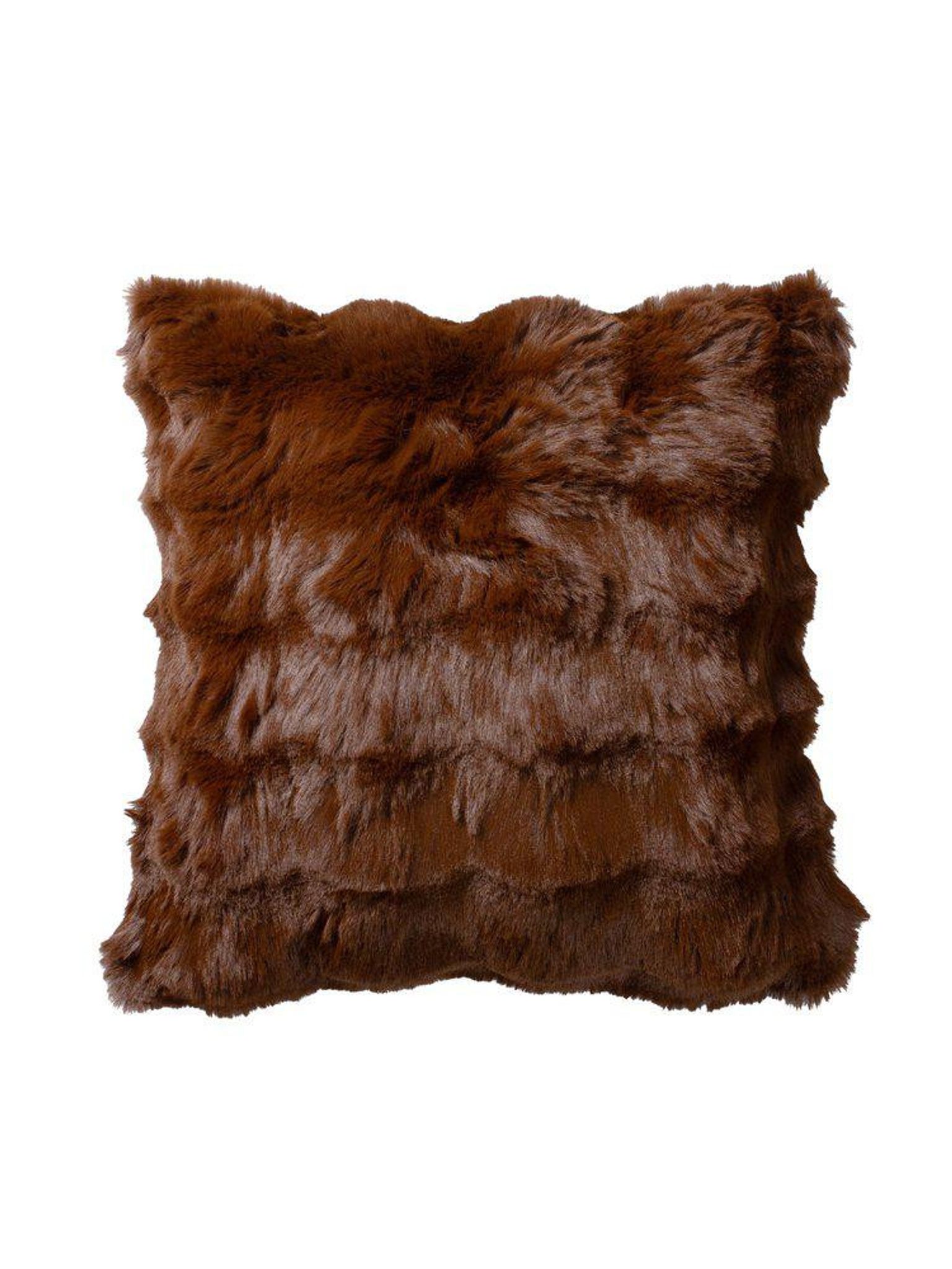 Detta är ett Lana kuddfodral i pälsimitation, brun och 45x45 cm — ett mjukt tillskott till din soffa eller fåtölj som ger en varm och inbjudande stämning i vardagsrum eller sovrum. Fuskpälsen fram ger en ombonad känsla och den mjuka velourbaksidan gör det skönt att luta sig mot.