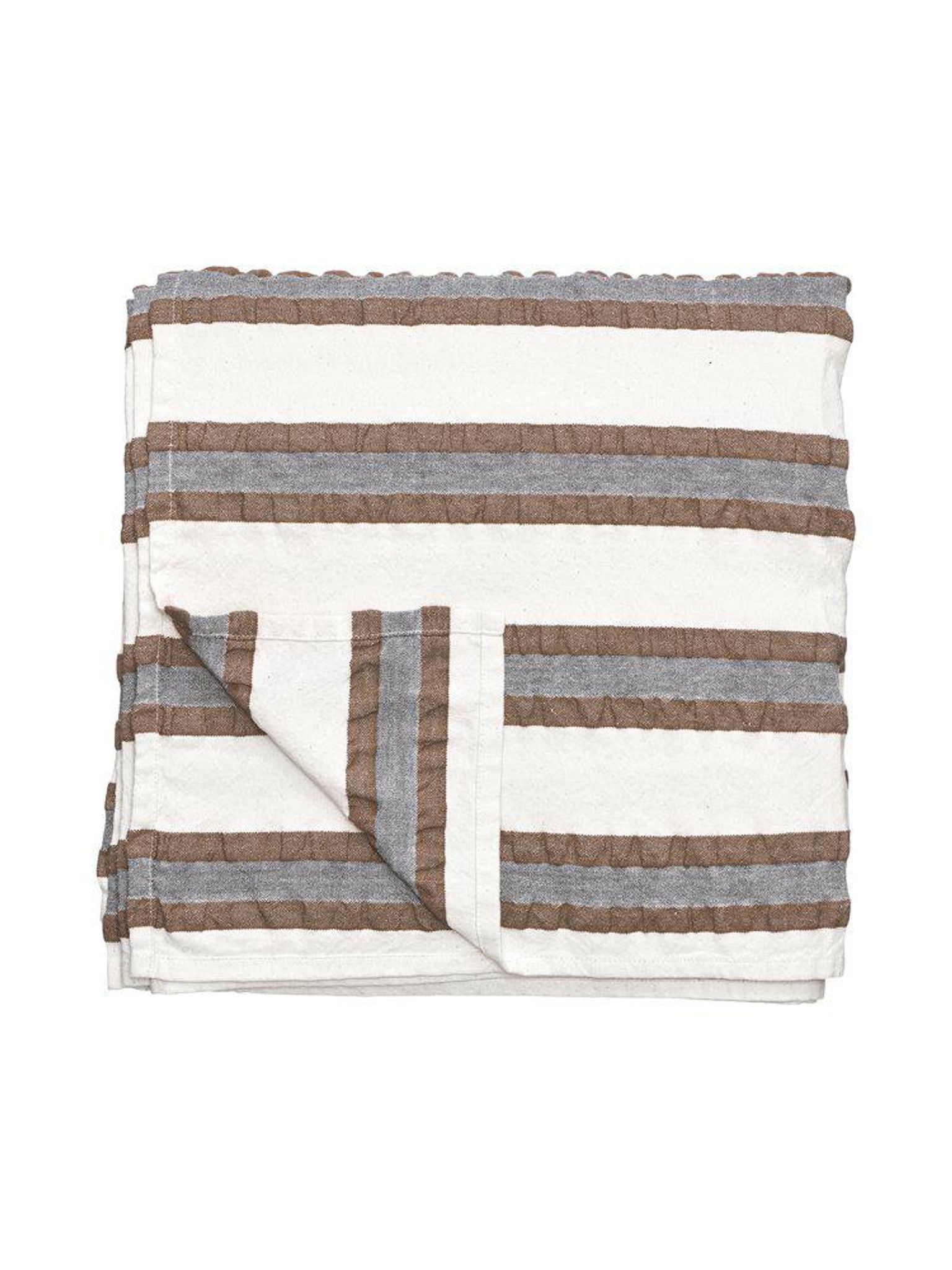 - Design: Garnfärgat randigt mönster i brun mellanton som gör dukningen ombonad.