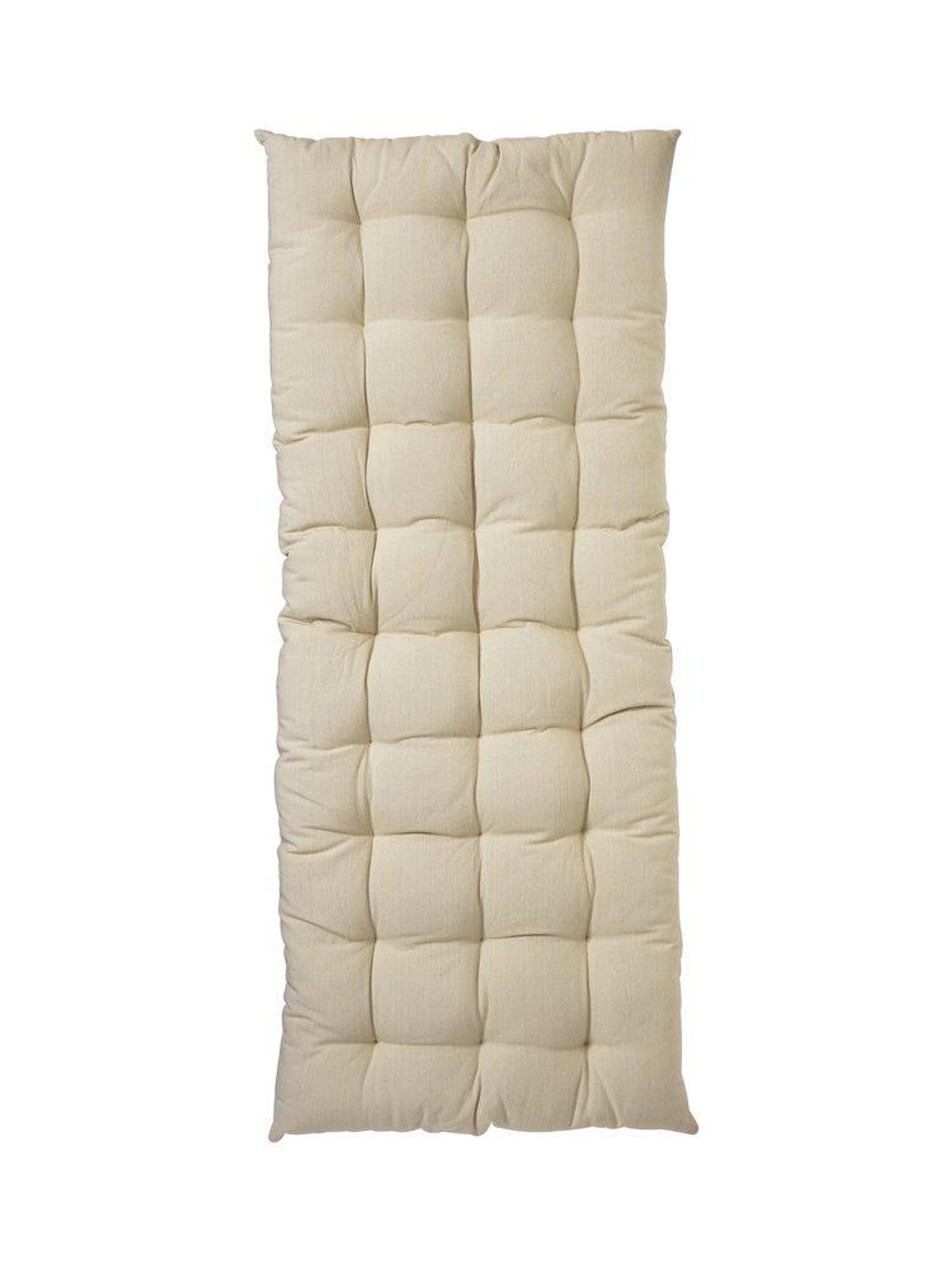 Dynan är 45x120 cm och passar väl på längre sittplatser som bänkar eller loungesoffor. Fyllningen ger stadigt stöd så att du sitter bekvämare under längre stunder, vilket gör vardagliga stunder som fika eller läsning trevligare.