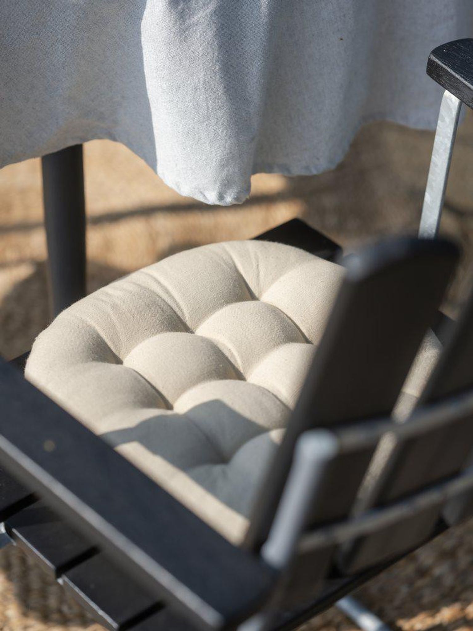 Överdraget är i bomull och fyllningen i polyester, vilket ger en behaglig känsla och stadigt stöd. Dekorativ söm ger lite extra detalj medan OEKO-TEX-certifikatet ger dig trygghet vad gäller innehåll. Dynan har 40 cm i diameter och 36 cm i tjocklek, vilket passar de flesta stolar.