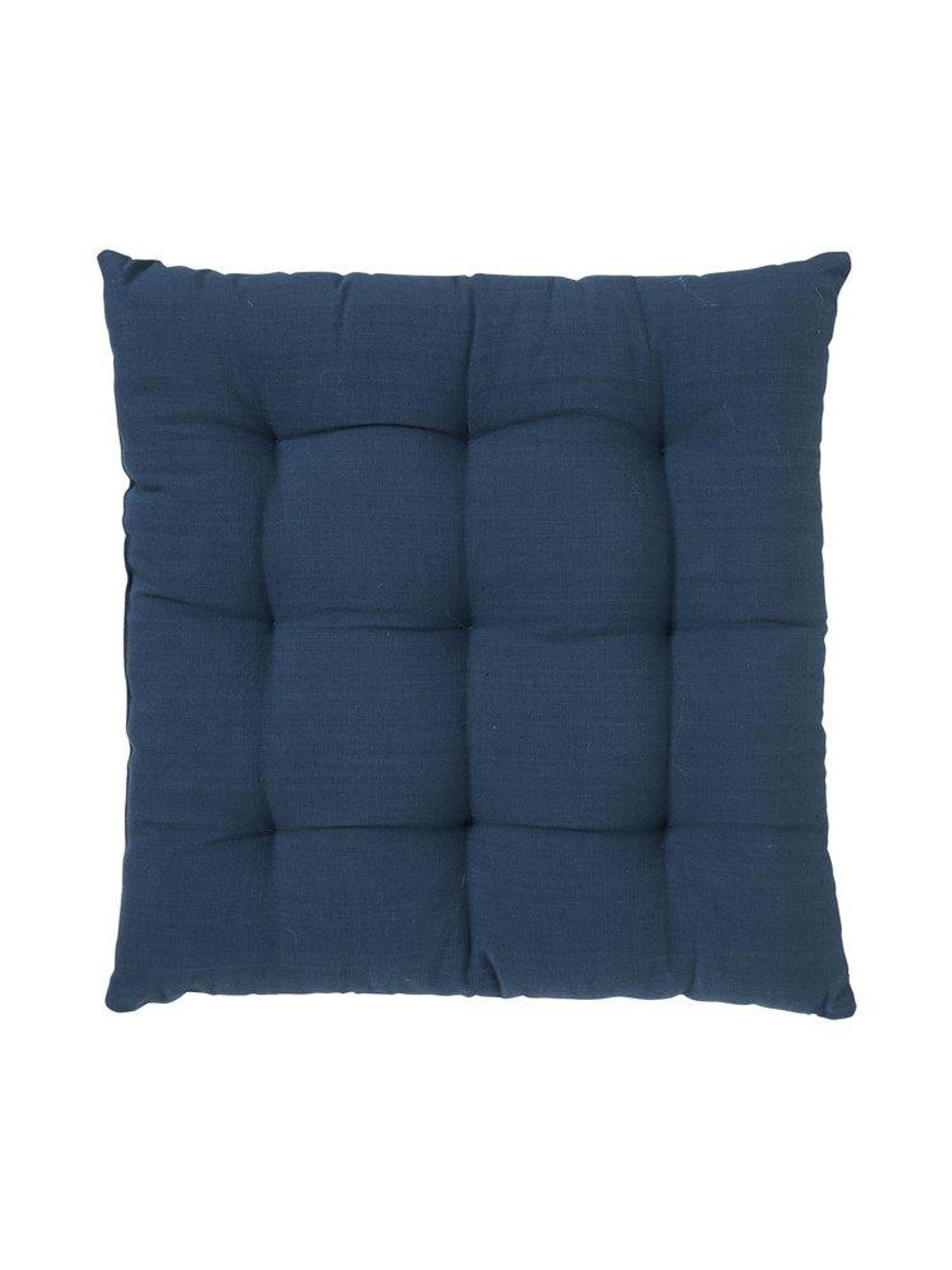 Denna miljövänliga blå stolsdyna i bomull ger dig bekväm sittning både inne och ute. Dekorativa sömmar tillför en stilren detalj som passar på dina stolar och gör vardagssittningen skönare.