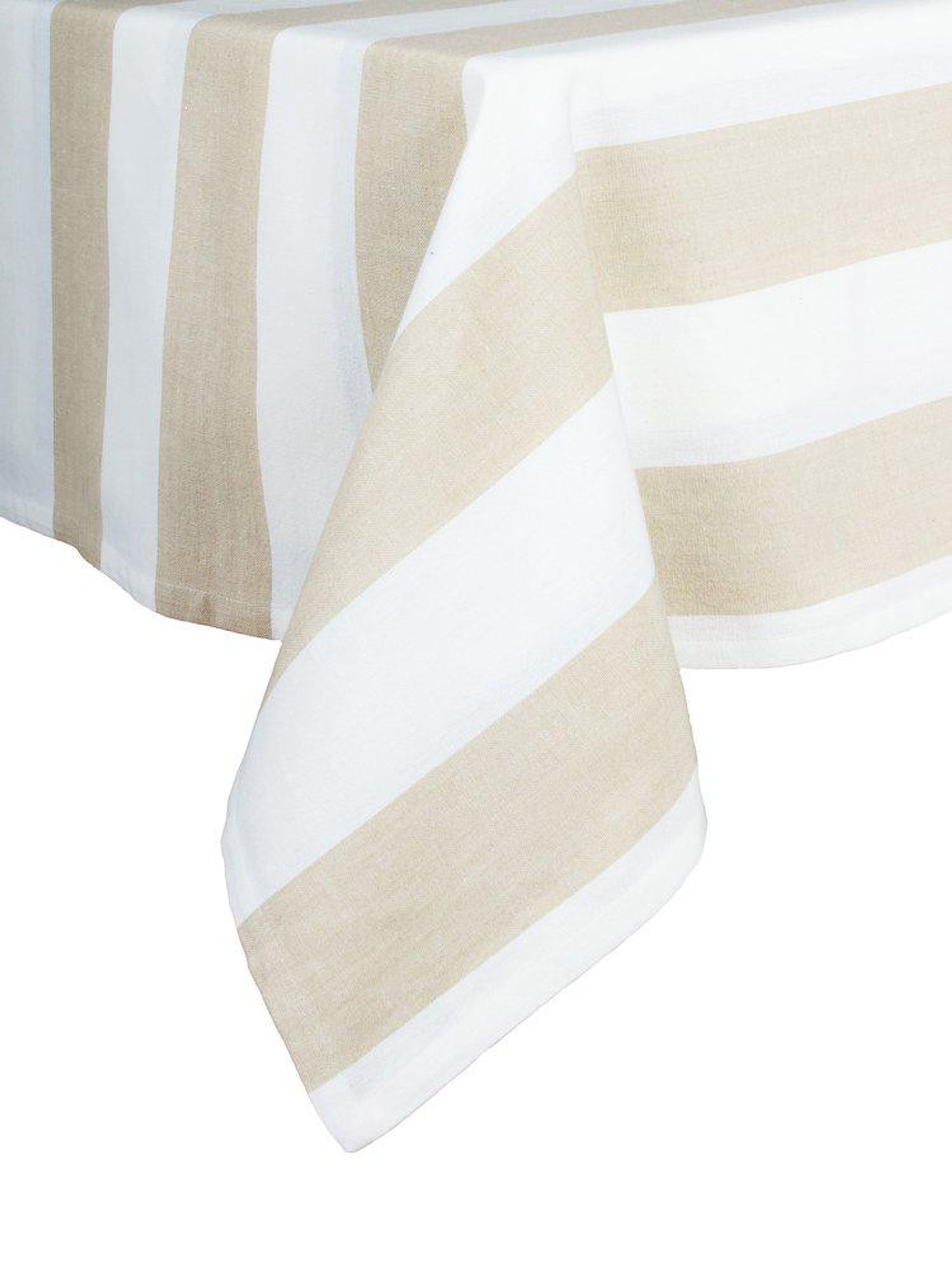Duk Louise 145x250 cm i bomull från Svanefors, randig beige och Standard 100 by OEKO-TEX®. En snygg, praktisk duk som håller länge, funkar bra på ditt matbord och passar både vardag och fest.