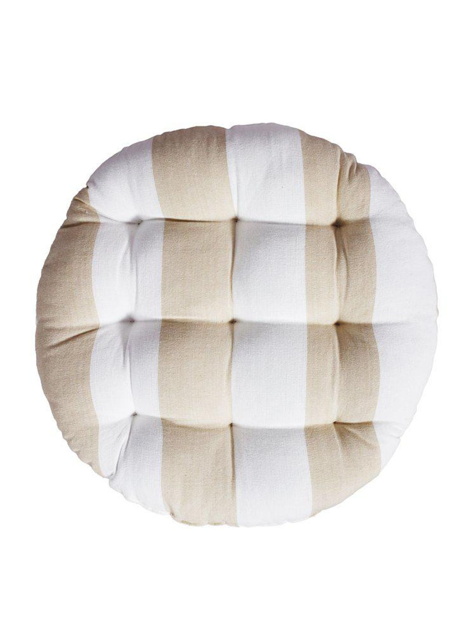 Rund stolsdyna D40 cm i Oeko-Tex-certifierad bomull med polyesterfyllning, beige randig/rutig från Louise. Passar både inomhus och utomhus, funkar på din stol, håller länge, är snygg, praktisk och bra.