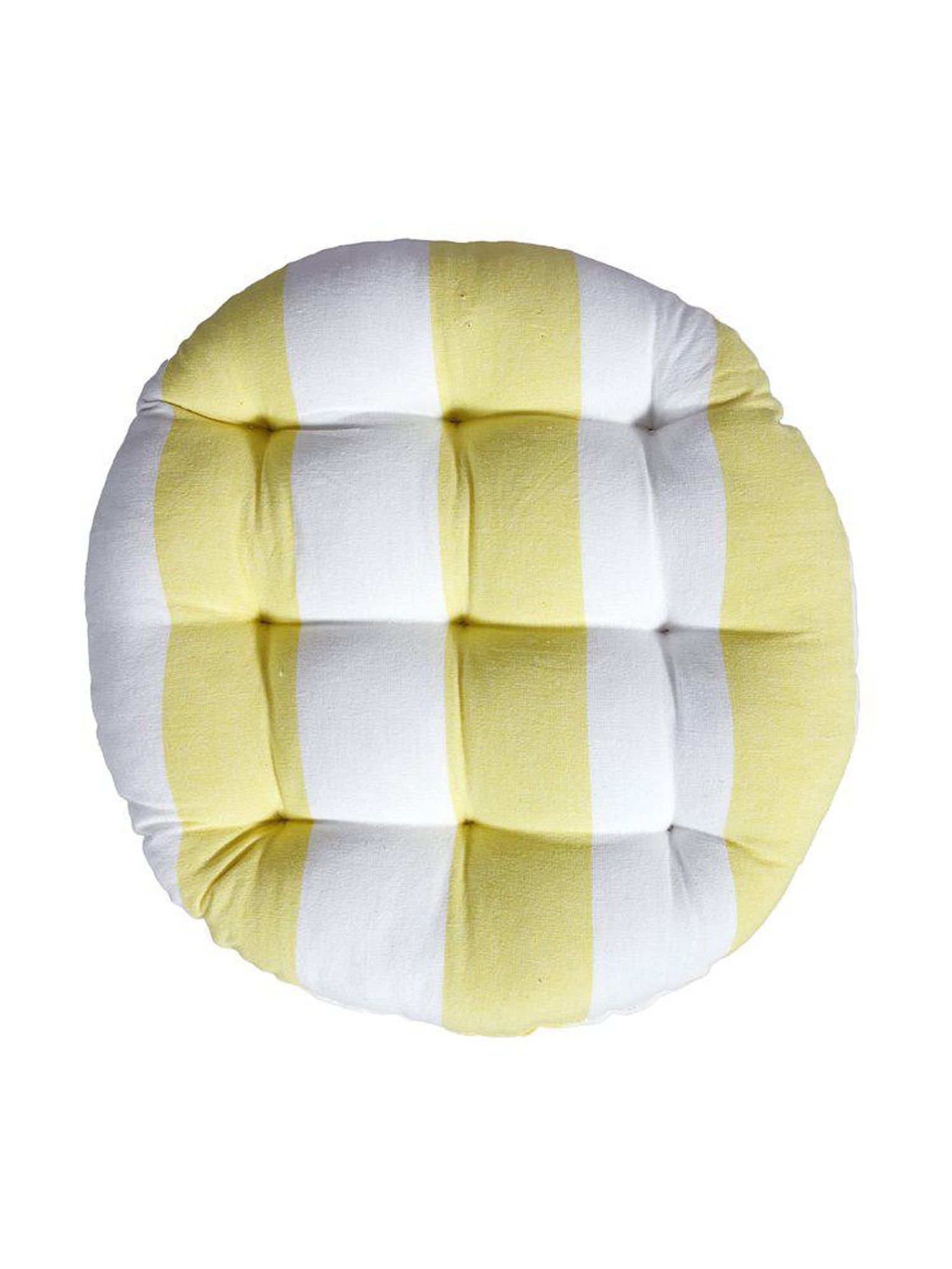 En rund stolsdyna i gul bomull som ger bättre sittkomfort vid matbordet, på köksstolen eller ute på altanen. Dynan kombinerar enkel stil och funktion — dekorativa stygn och polyesterfyllning ger stöd när du sitter och gör att stolen känns bekvämare i vardagen.