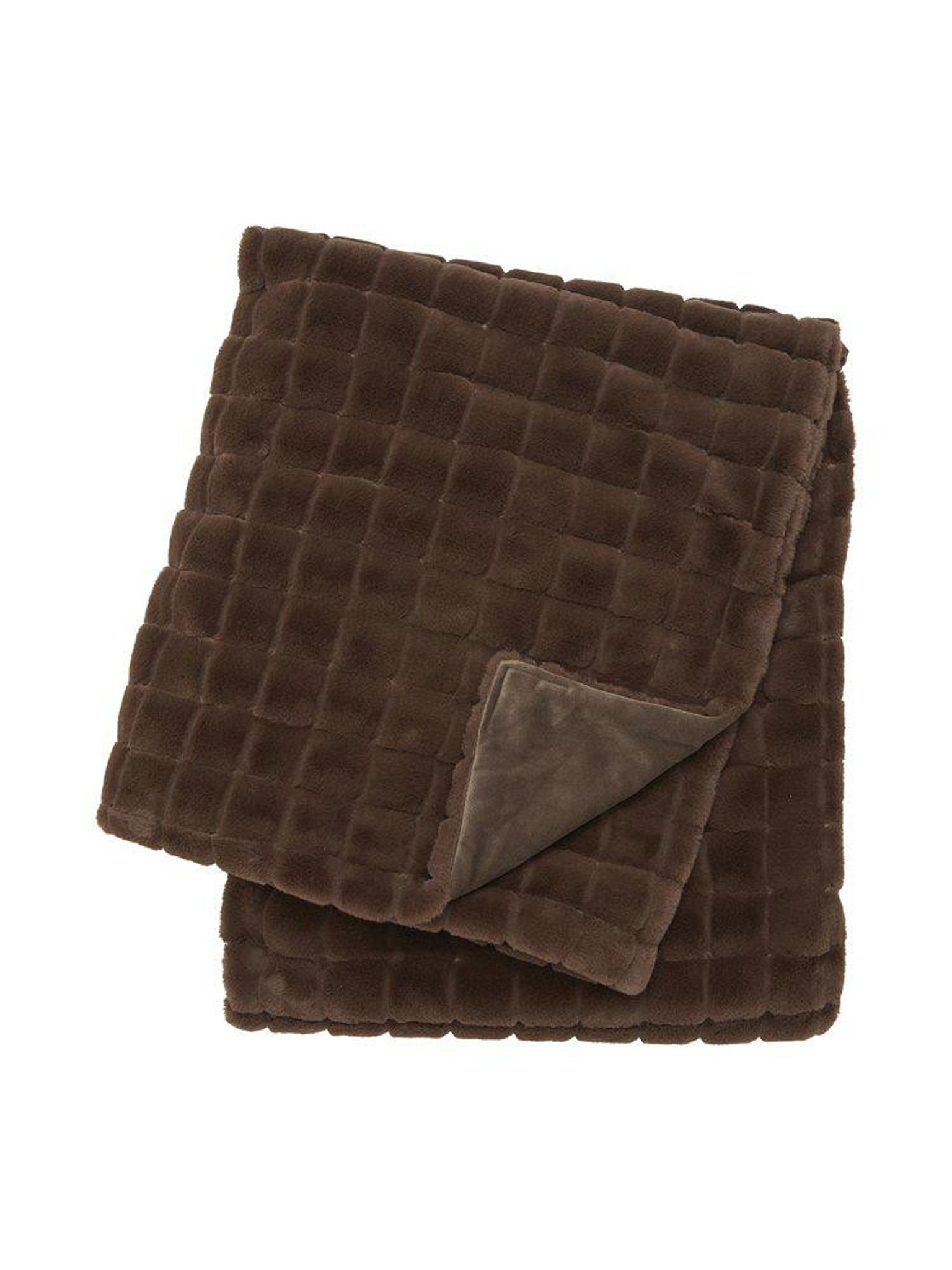 Luna pläd 120x150 cm i brun fuskpäls med tyg på baksidan. Snygg, praktisk och bra pläd som håller länge, passar i din soffa och funkar när du vill mysa.