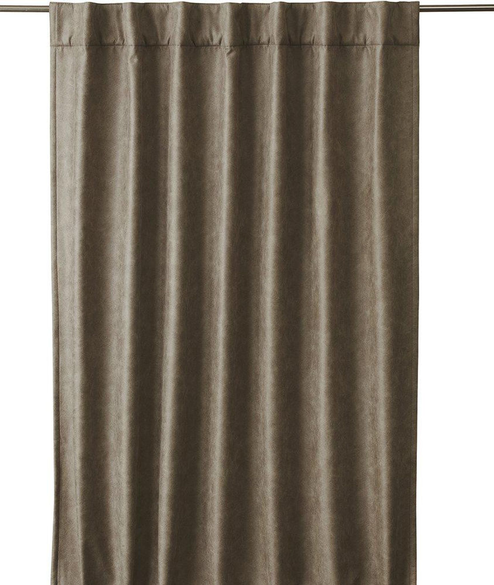 Lycke mörkläggningsgardin 135x280 cm från Svanefors i brun konstläder med fleecebaksida. Den passar i ditt sovrum eller vardagsrum, funkar bra för att mörklägga, är praktisk, snygg och håller länge.