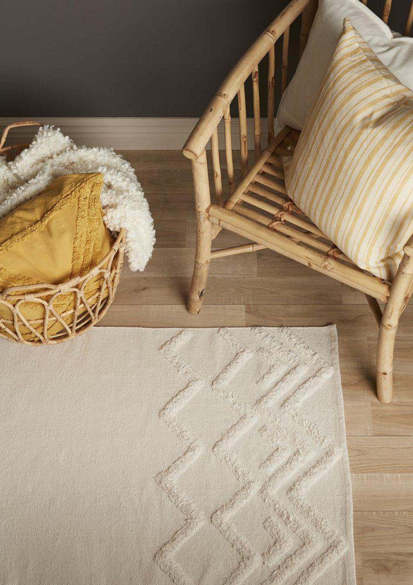 - Tuftat mönster: Reliefmönstret ger struktur och lyfter rummet utan att ta över inredningen.
