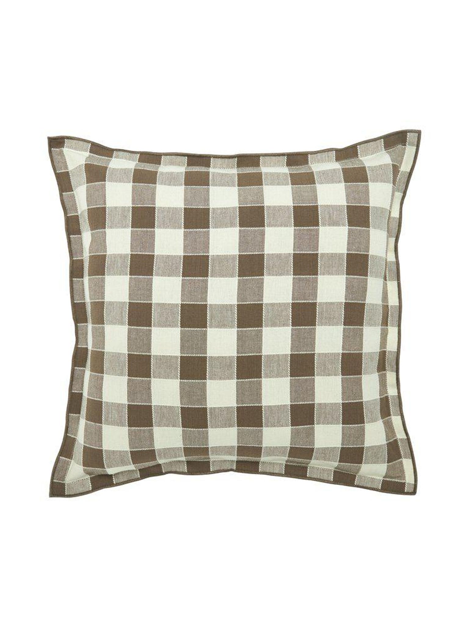 Mary kuddfodral 45x45 cm i bomull, nougatbrun med rutigt mönster. Passar i din soffa eller på sängen, är snygg, praktisk och håller länge och funkar bra i vardagsrummet.