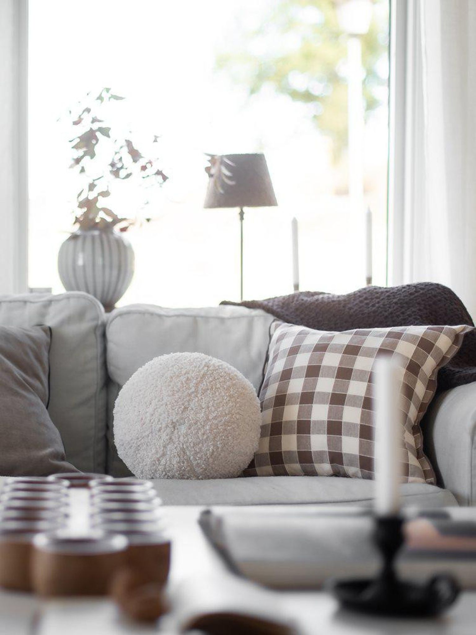 - Stilrent mönster: Rutig design i nougat som passar både moderna och klassiska hem.