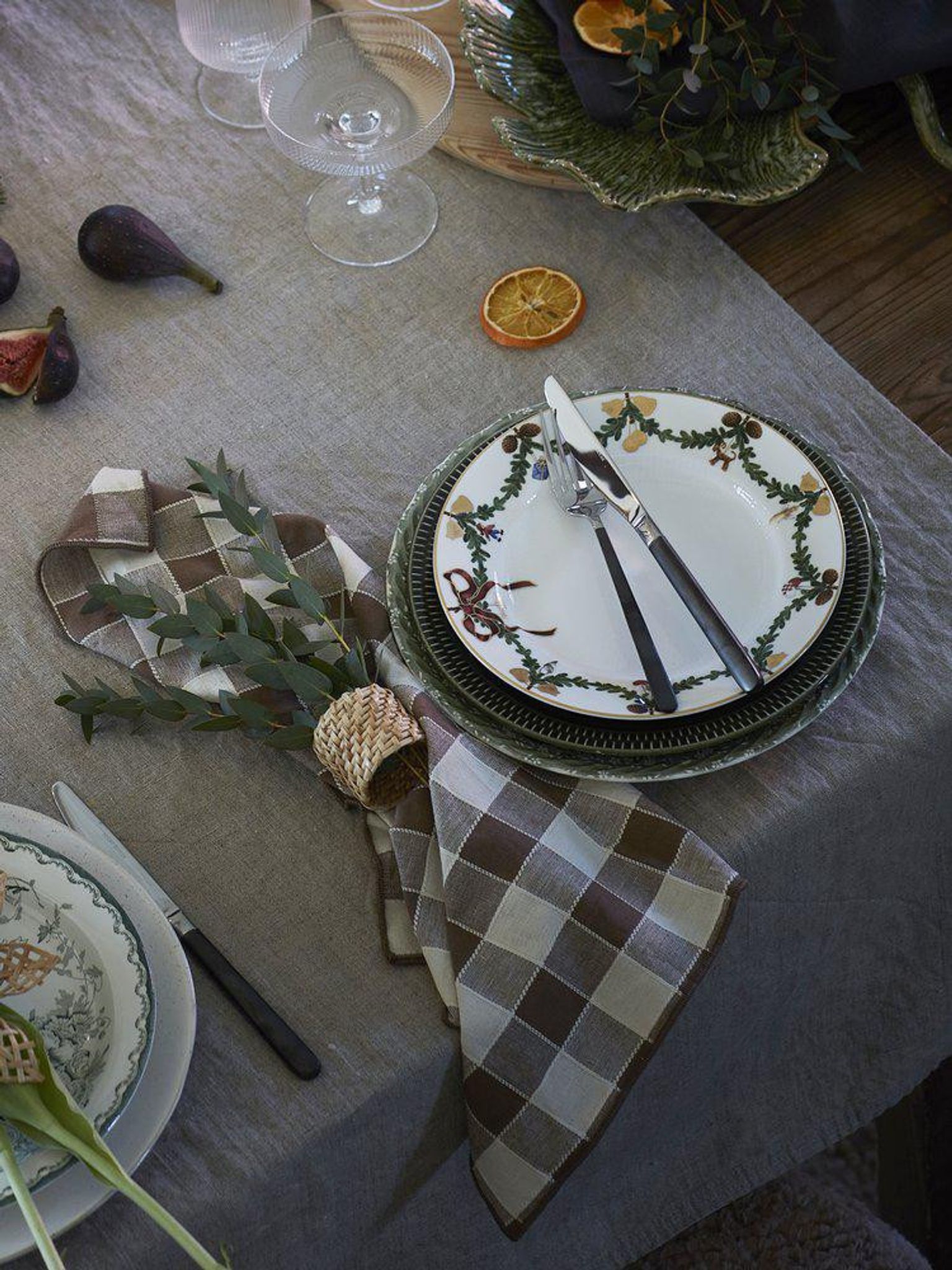 - Garnfärgat mönster: Ger ett rutigt/randigt uttryck som lyfter bordet.