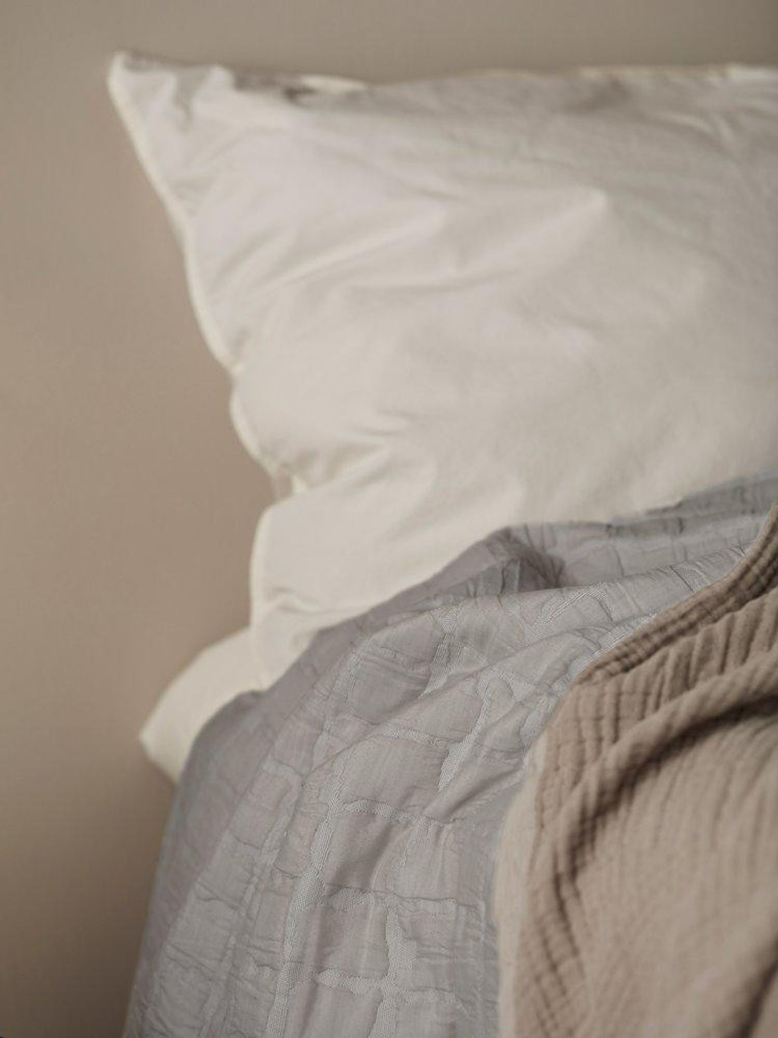 Mavis Grå Matelassé Överkast är ett vadderat överkast i grått som passar i ditt sovrum — både som täcke på enkelsängen och som en vacker detalj på dubbelsängen. Det upphöjda matelassémönstret ger textur och en inbjudande stämning, samtidigt som det tvålagrade tyget bidrar med värme.