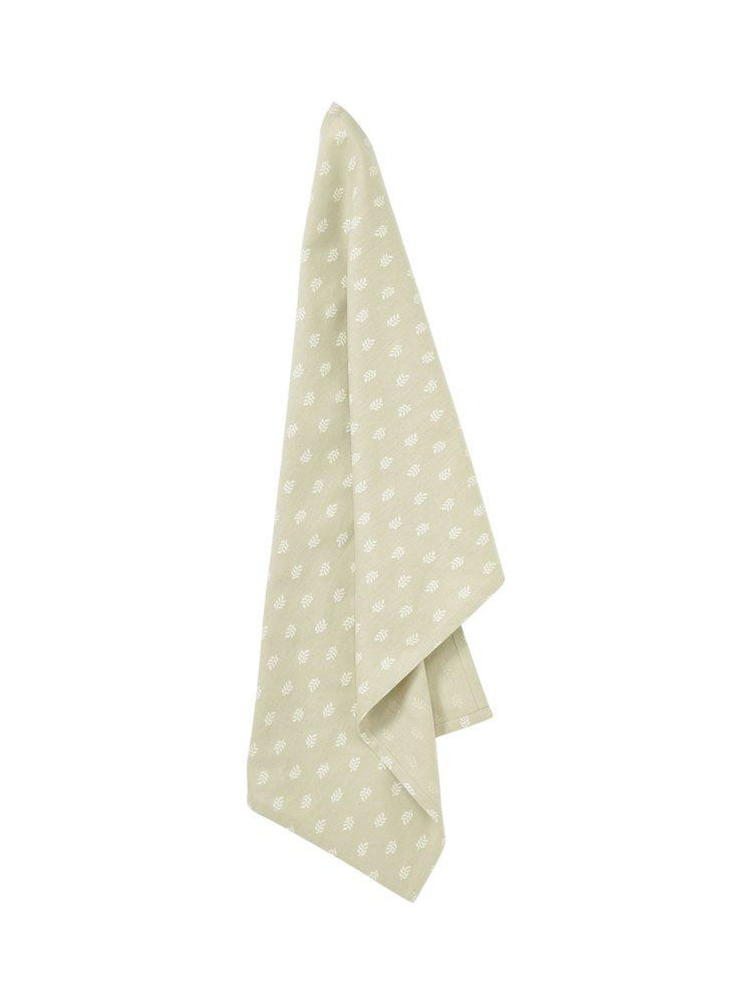 Det här är en kökshandduk som kombinerar funktion och utseende — en diskhandduk som håller länge och ger ett fräscht inslag i ditt kök. Mönstret i ljusgrön salviaton gör att handduken syns utan att ta över, och den passar både i moderna och mer traditionella kök.
