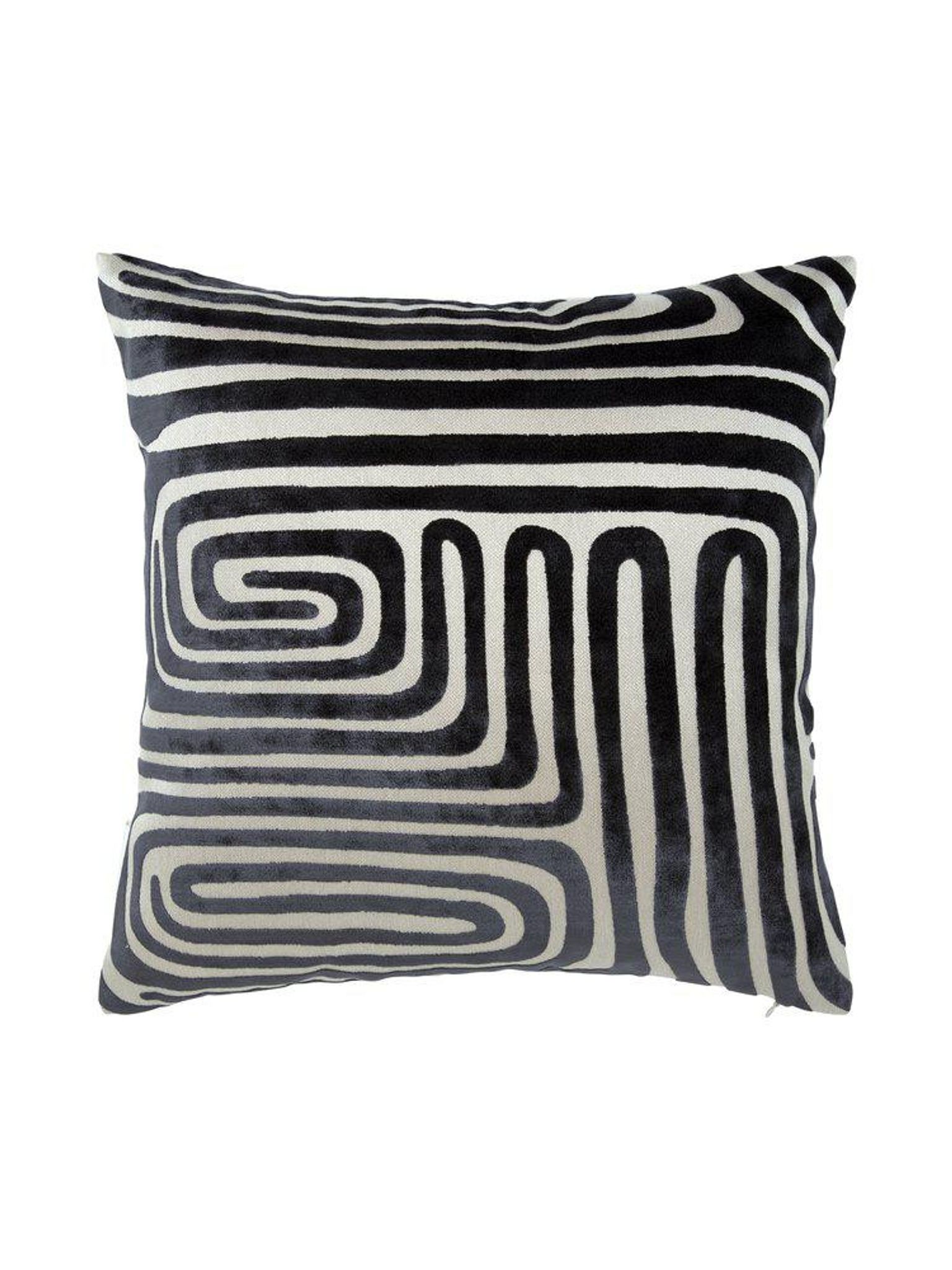 Molly kuddfodral 45x45 cm i gråsvart möbeltyg med vävt mönster och dragkedja, certifierat STANDARD 100 by OEKO-TEX®. Passar i din soffa eller säng, är snygg, praktisk, håller länge och funkar bra.