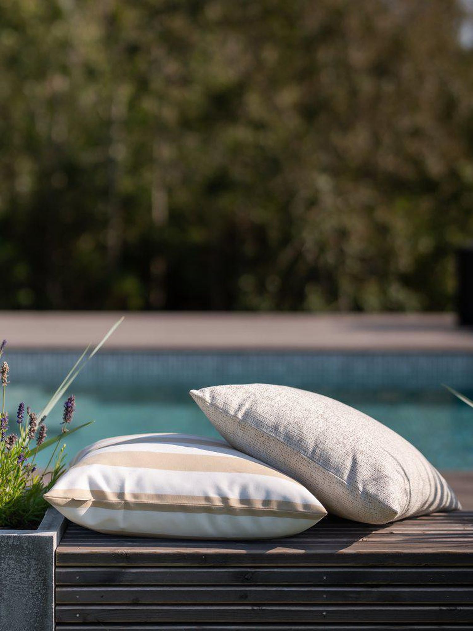 Moln kuddfodral i beige för utomhusbruk, 45x45 cm, från Svanefors. Ett funktionellt kuddfodral som passar på din uteplats, balkong eller i trädgården och ger din utemöbel en lugn, neutral ton.