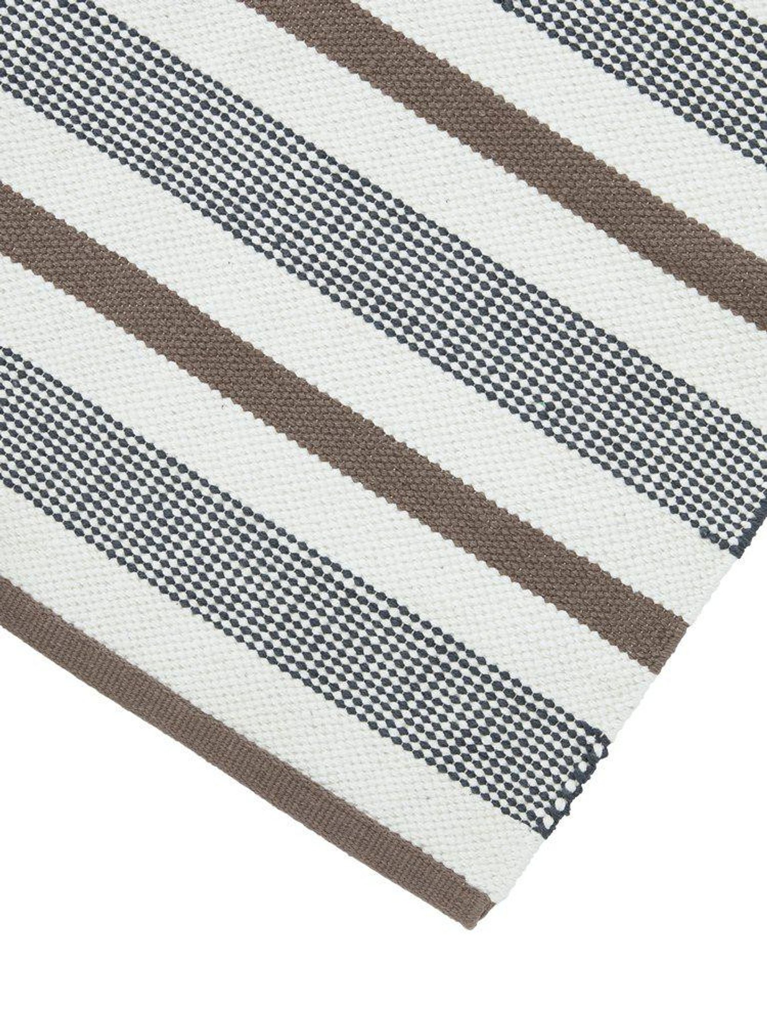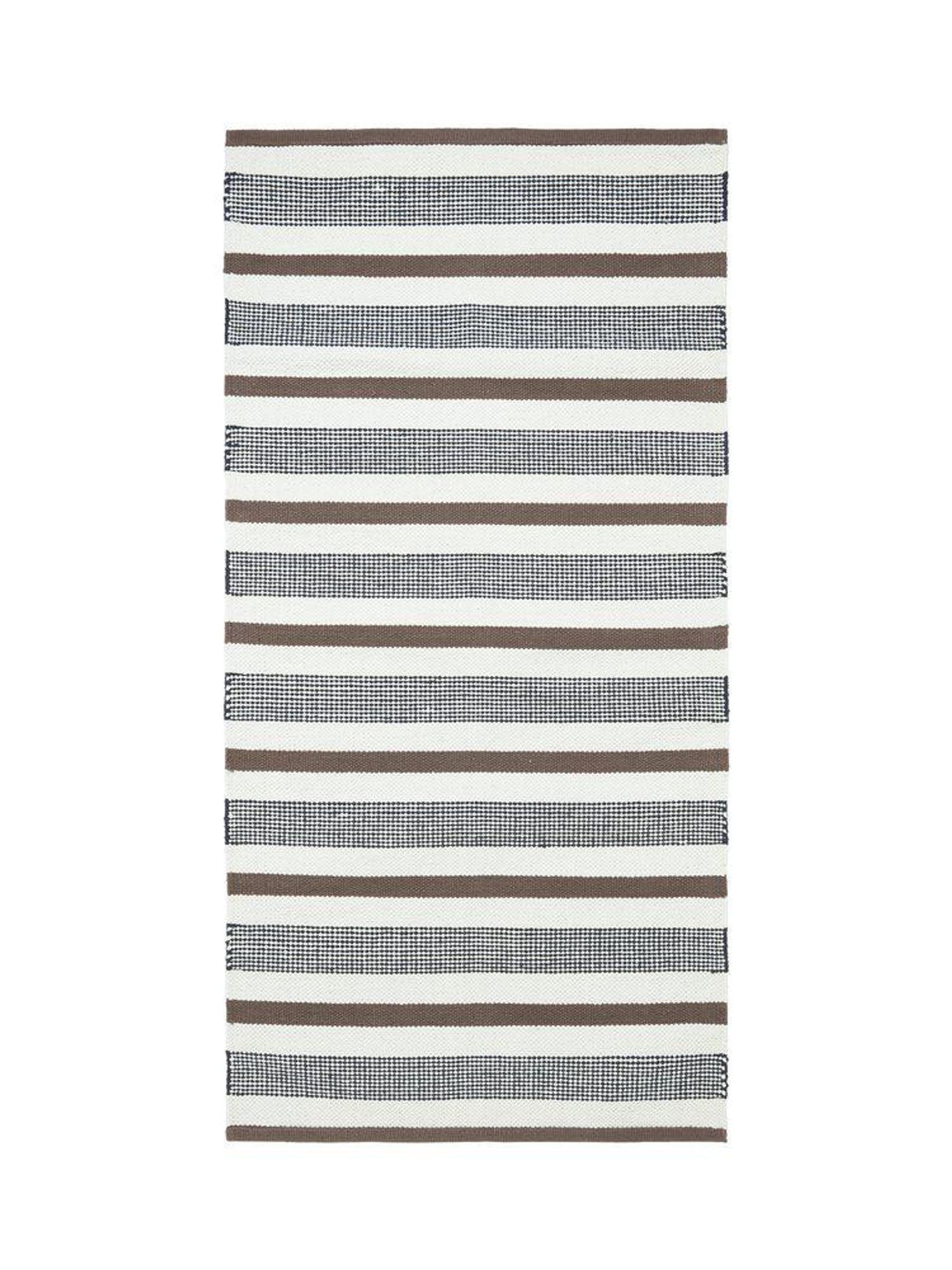 Tunn bomullsmatta 60x90 cm i nougat från Svanefors, slätvävd randig Neo med halkskydd. Den är snygg, praktisk och håller länge, passar i hallen eller badrummet och funkar bra för ditt hem.