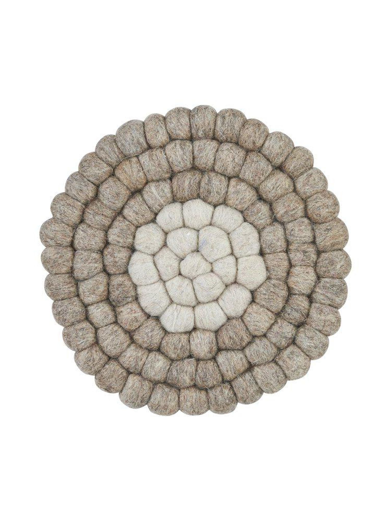 Detta är ett handgjort grytunderlägg i tovade ullbollar från Svanefors som skyddar ditt bord mot varma kastruller och pannor. Med 20 cm i diameter passar det till köksbordet eller bänken och funkar vid både vardagsmiddag och när du dukar upp till gäster.
