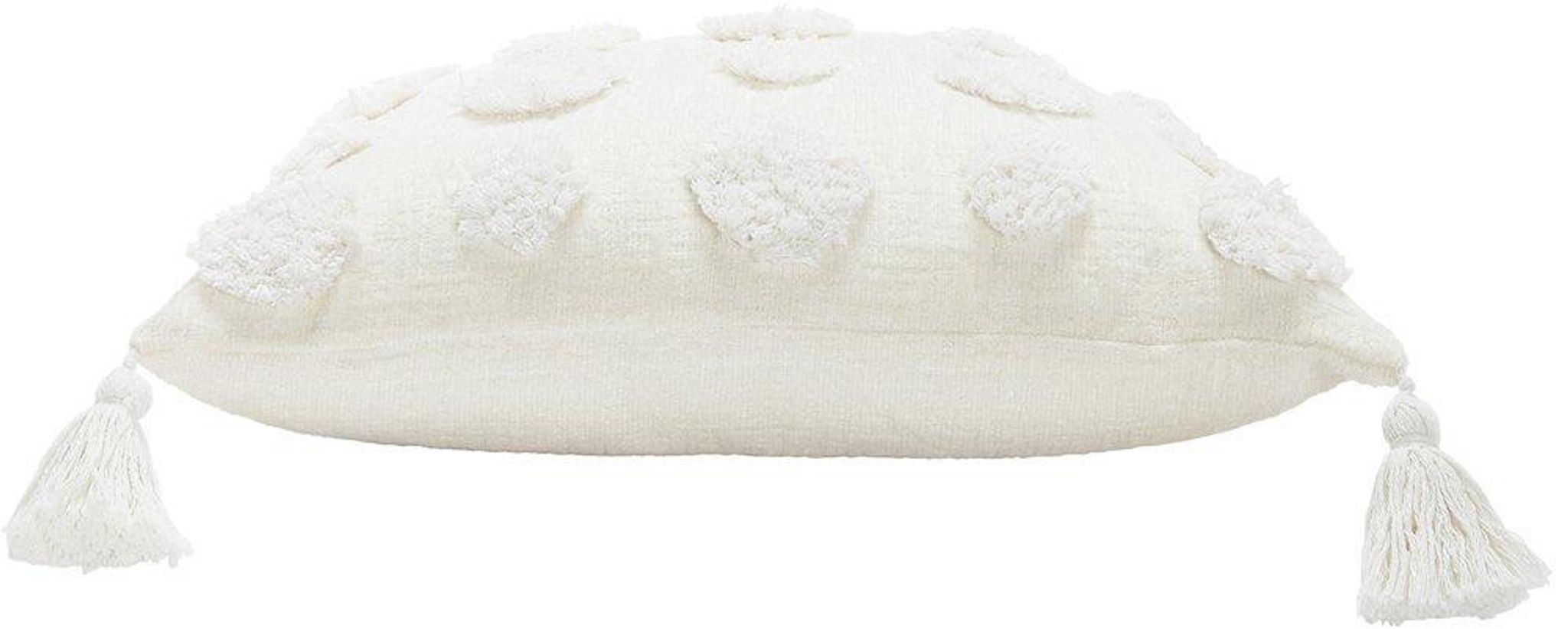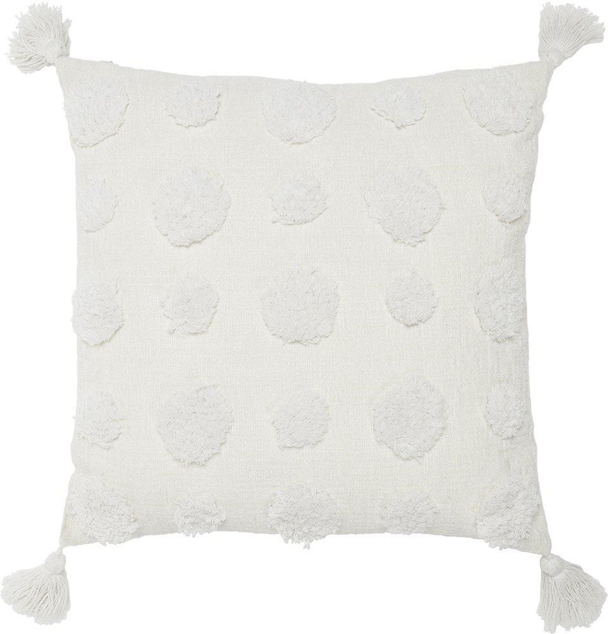 Svanefors Pom kuddfodral 45x45 cm i offwhite bomull med tuftat mönster och tofsar. Passar din soffa eller säng, funkar som en praktisk och snygg detalj som håller länge och är bra för din inredning.