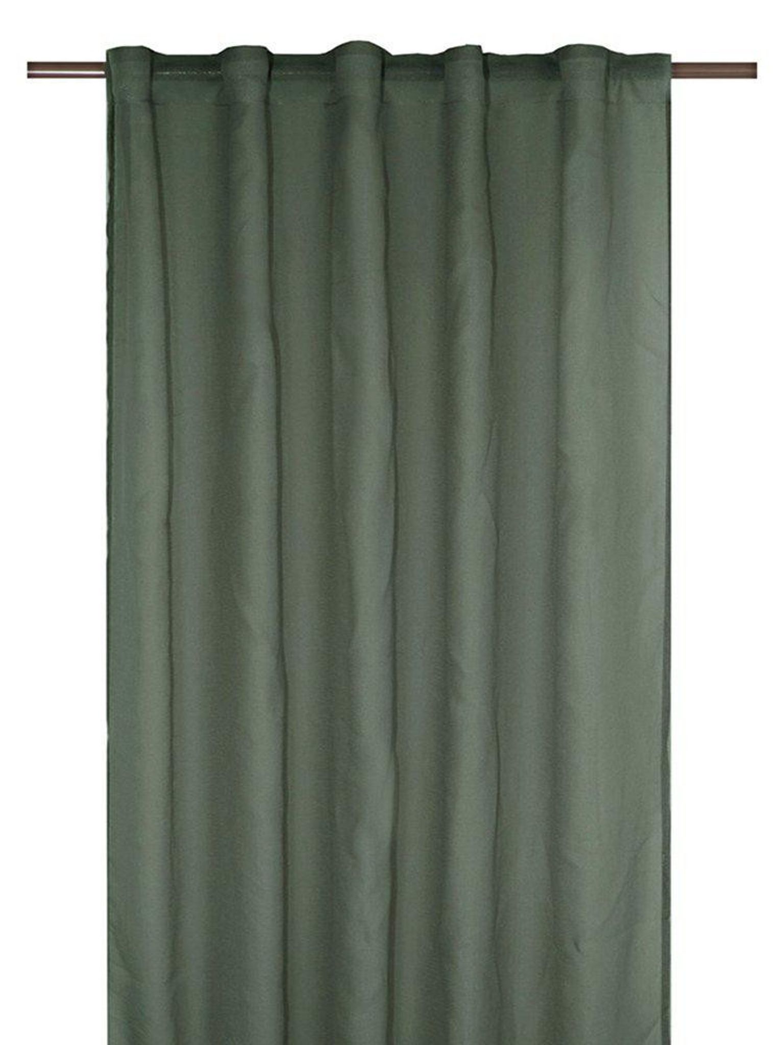 Rimy gardin Mossa 2-pack i skir tyg, enfärgad grön 2x140x300 cm. Du hänger dem med multiband för flexibel upphängning och ljussilning; passar och funkar bra, är snygga, praktiska och håller länge.