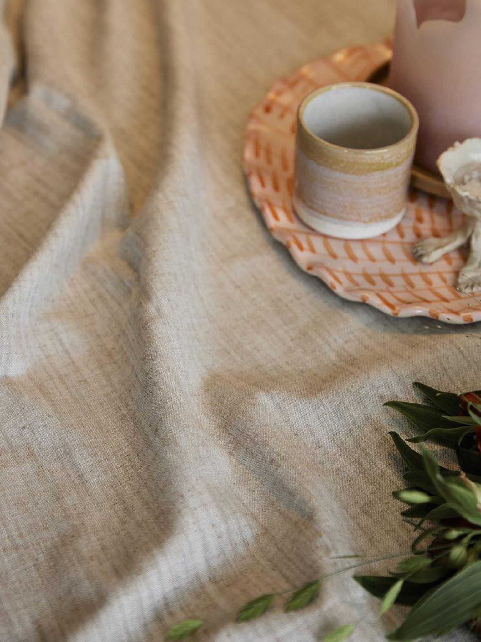 Denna påkostade, beige duk i bomull-linne är gjord för stora matbord och passar när du vill lyfta dukningen vid vardagsmiddagar eller bjudningar. Dukens neutrala ton ger en mjuk bakgrund till ditt bord och fungerar lika bra till familjemiddagar som till fest.