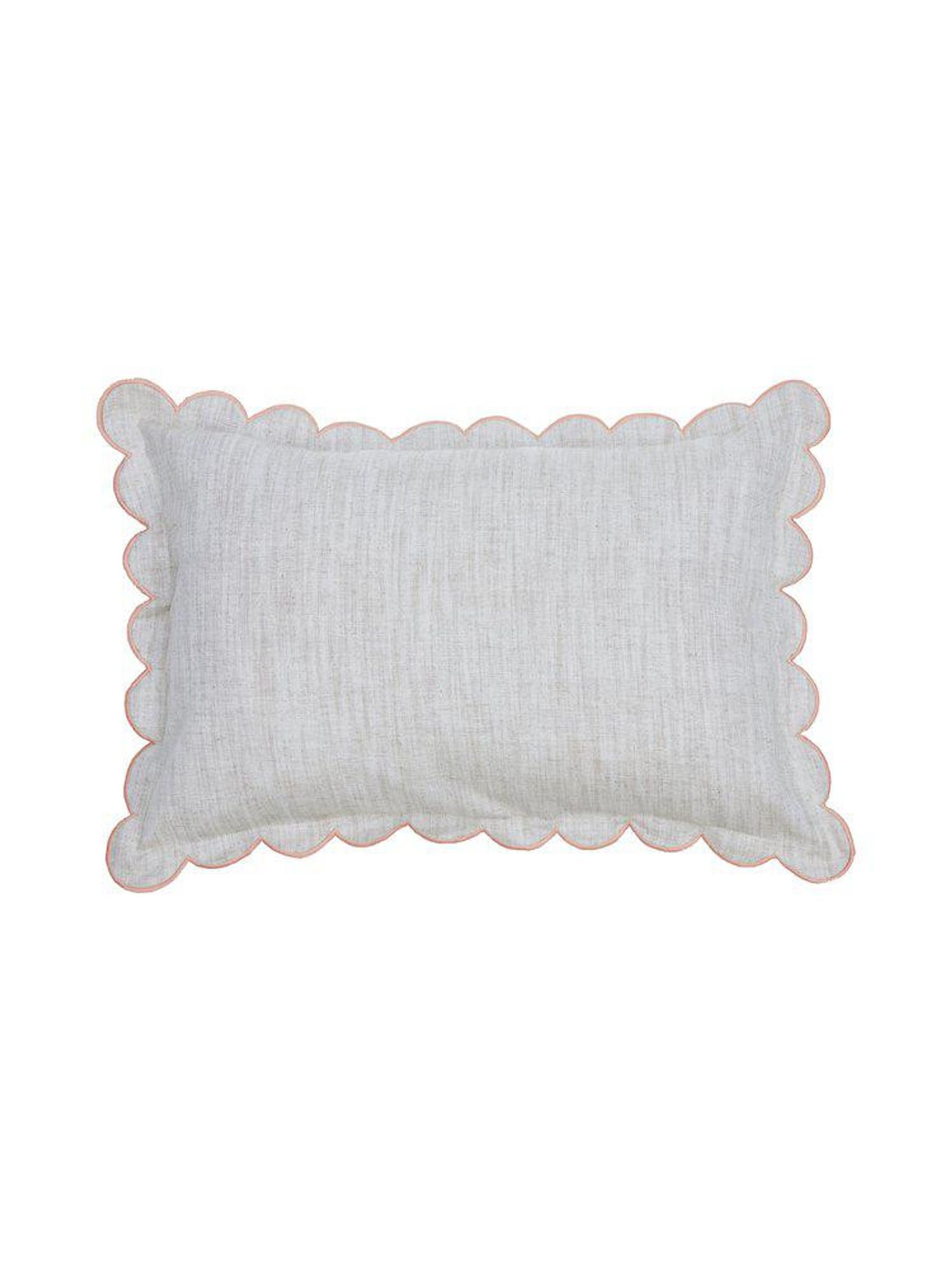 Kuddfodral Sabina 40x60 cm i bomull/linneblandning. Korallfärgat från Svanefors med snäckskalformade kanter och dold dragkedja, passar i ditt vardagsrum och funkar som snygg, praktisk detalj som håller länge och är bra, STANDARD 100 by OEKO-TEX®