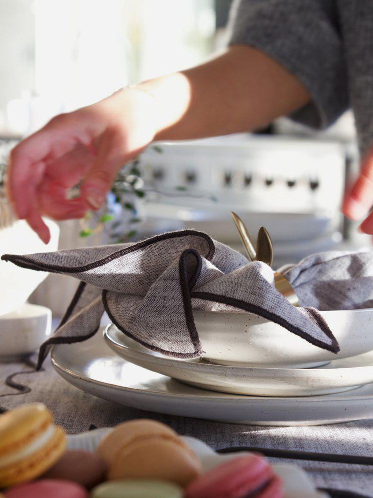 Servetterna i Sabina-kollektionen ger bordet ett lugnare och mer genomtänkt intryck utan att ta över. Materialet känns behagligt att ta i och höjer vardagsdukningen genom att ge en ombonad yta som är lätt att kombinera med annan dukning.