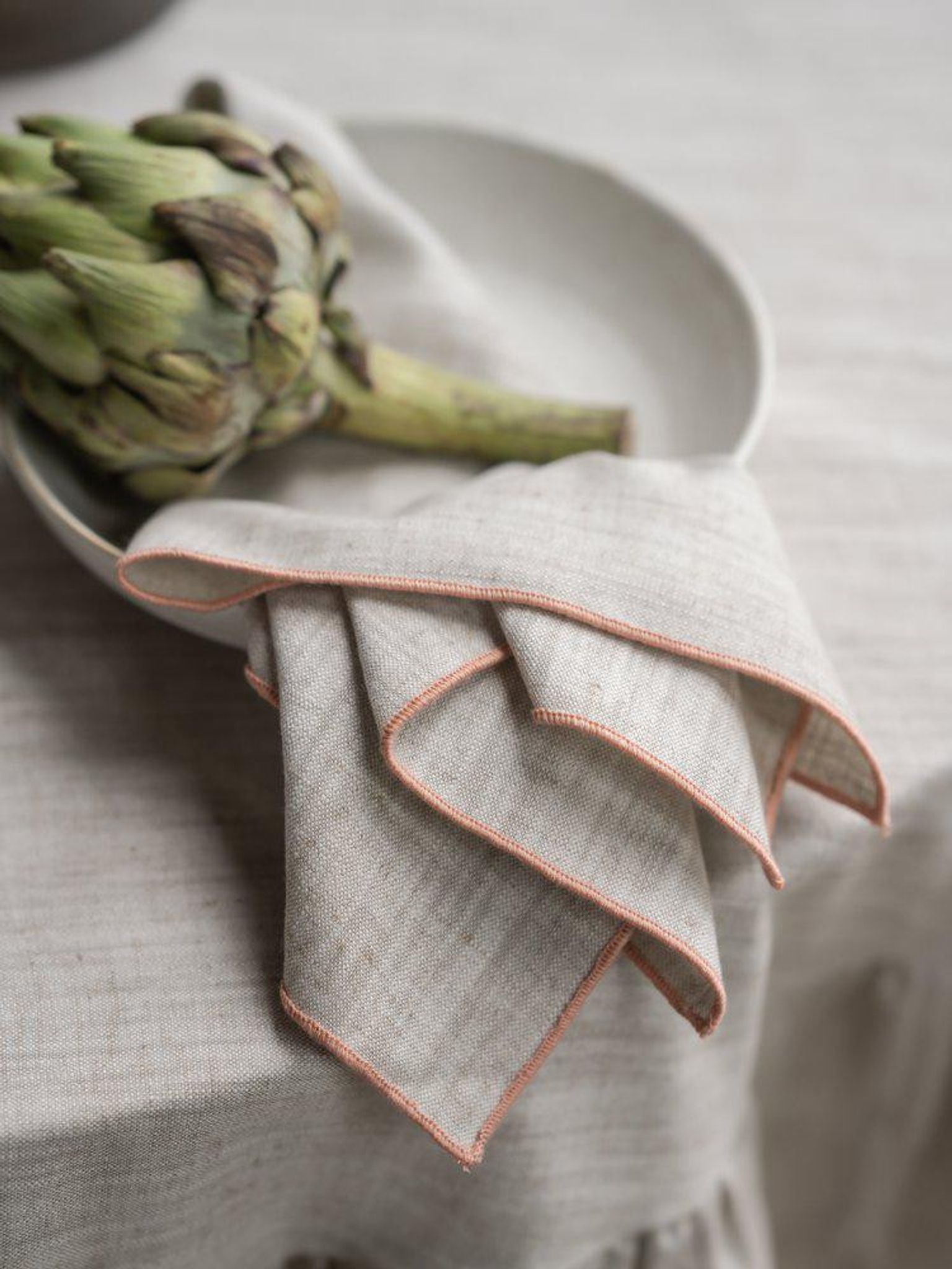 Den korallfärgade servetten från Svanefors kombinerar stil och funktion. Med överlockade kanter och linnelik känsla passar den välgjord för både vardagsdukning och fest — du kan använda den vid middagar, picknick eller när du vill duka upp lite extra hemma.