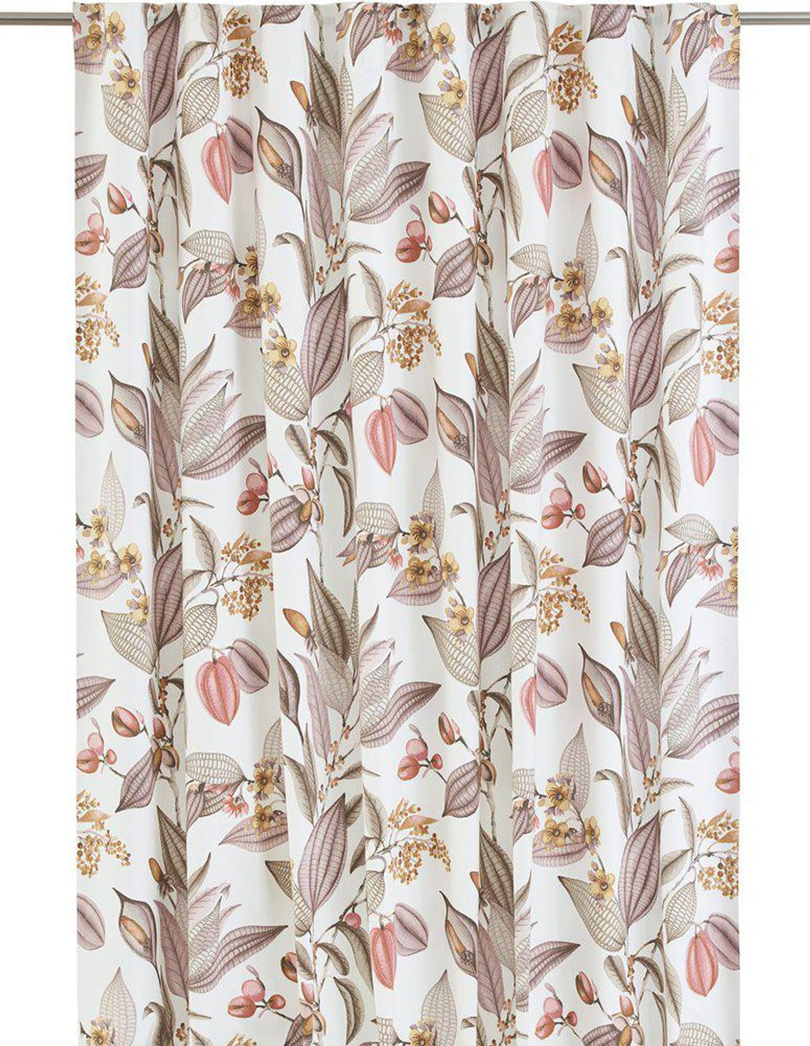 Svanefors Seedpod gardin 2x135x315 cm i 100% bomull, rosa mönster och puderfinish med multiband. Den passar i ditt vardagsrum eller sovrum, är snygg, praktisk, funkar bra och håller länge.