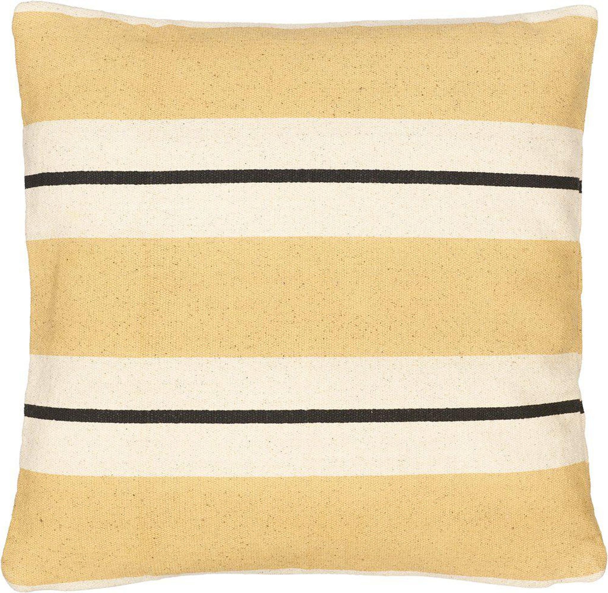 Kuddfodral Selma 45x45 cm i kraftig bomullsväv från Svanefors, gul med tryckt randigt/rutigt mönster, med dragkedja och syntetfyllning. Snygg och praktisk detalj som passar din soffa eller säng, funkar bra och håller länge.