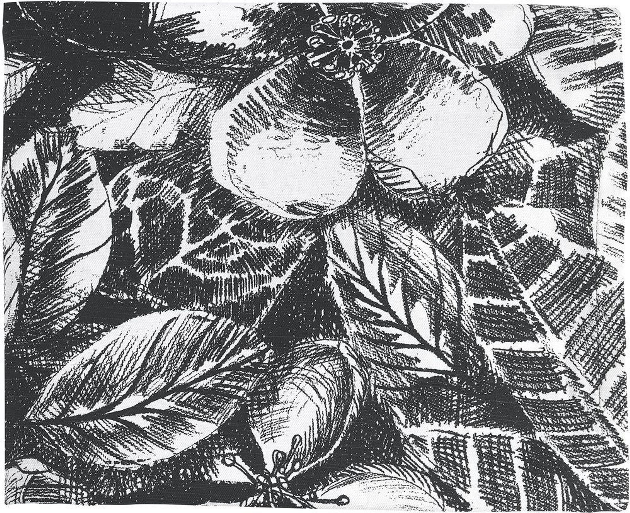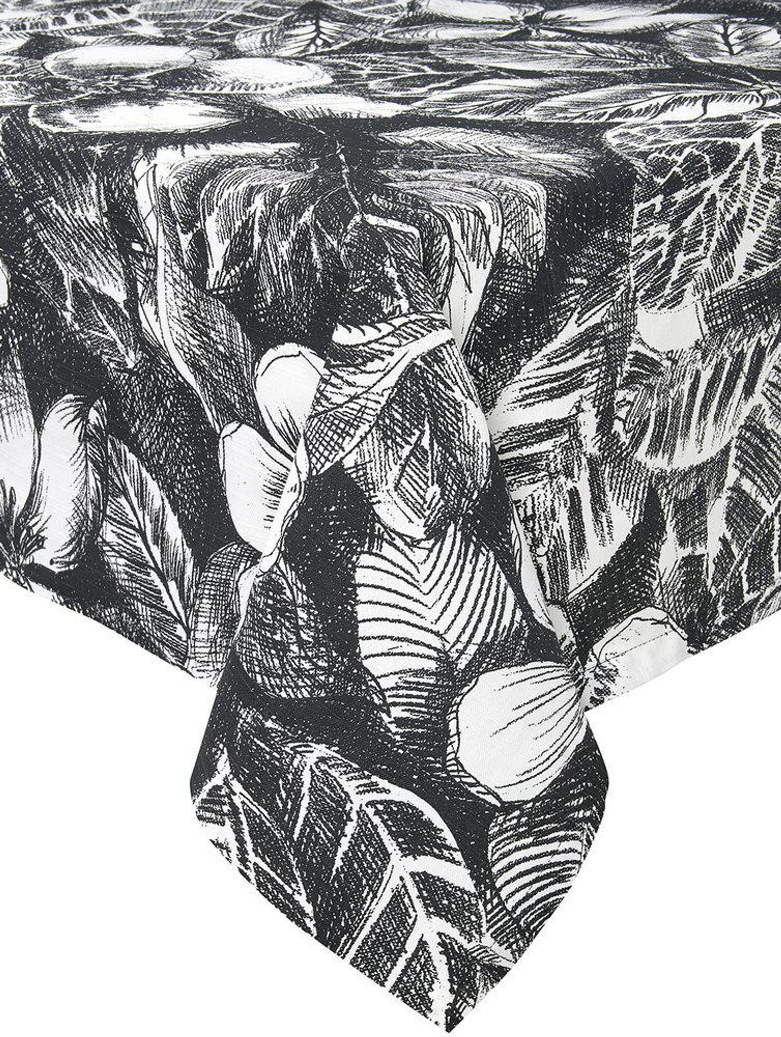 Svanefors Sonia bordsduk 140x250 cm i bomull, svartvit med botaniskt tryckt mönster och Oeko-Tex-certifiering. Passar din dukning och matplats, är snygg, påkostad, funkar och håller länge.