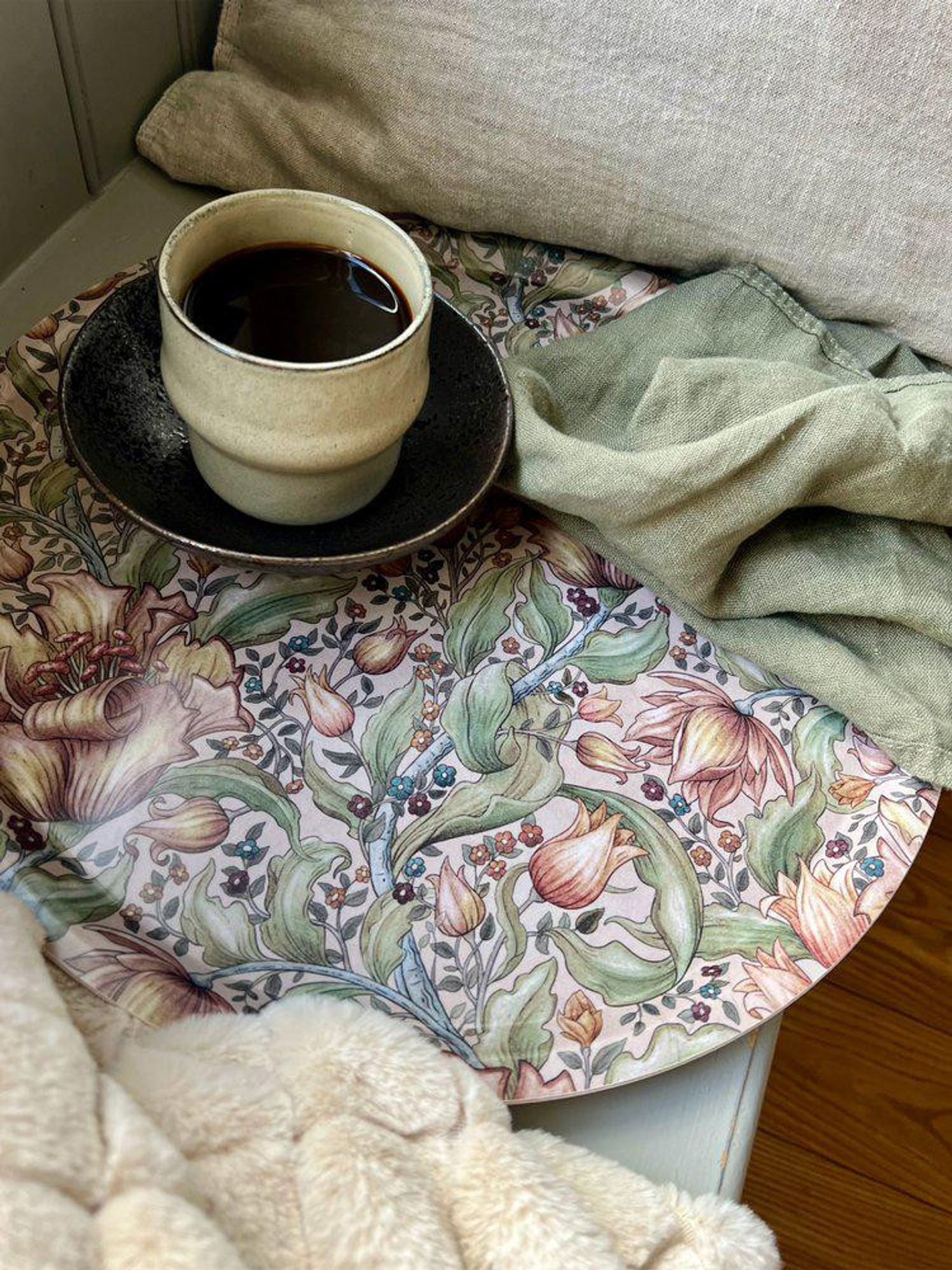 Denna laminatbricka är praktisk och underlättar servering av mat och dryck när du har gäster eller vill bära ut fika. Den FSC‑certifierade ytan gör att du kan göra ett mer ansvarsfullt val. Med 38 cm i diameter räcker ytan till för både vardagsservering och lite större uppläggningar.
