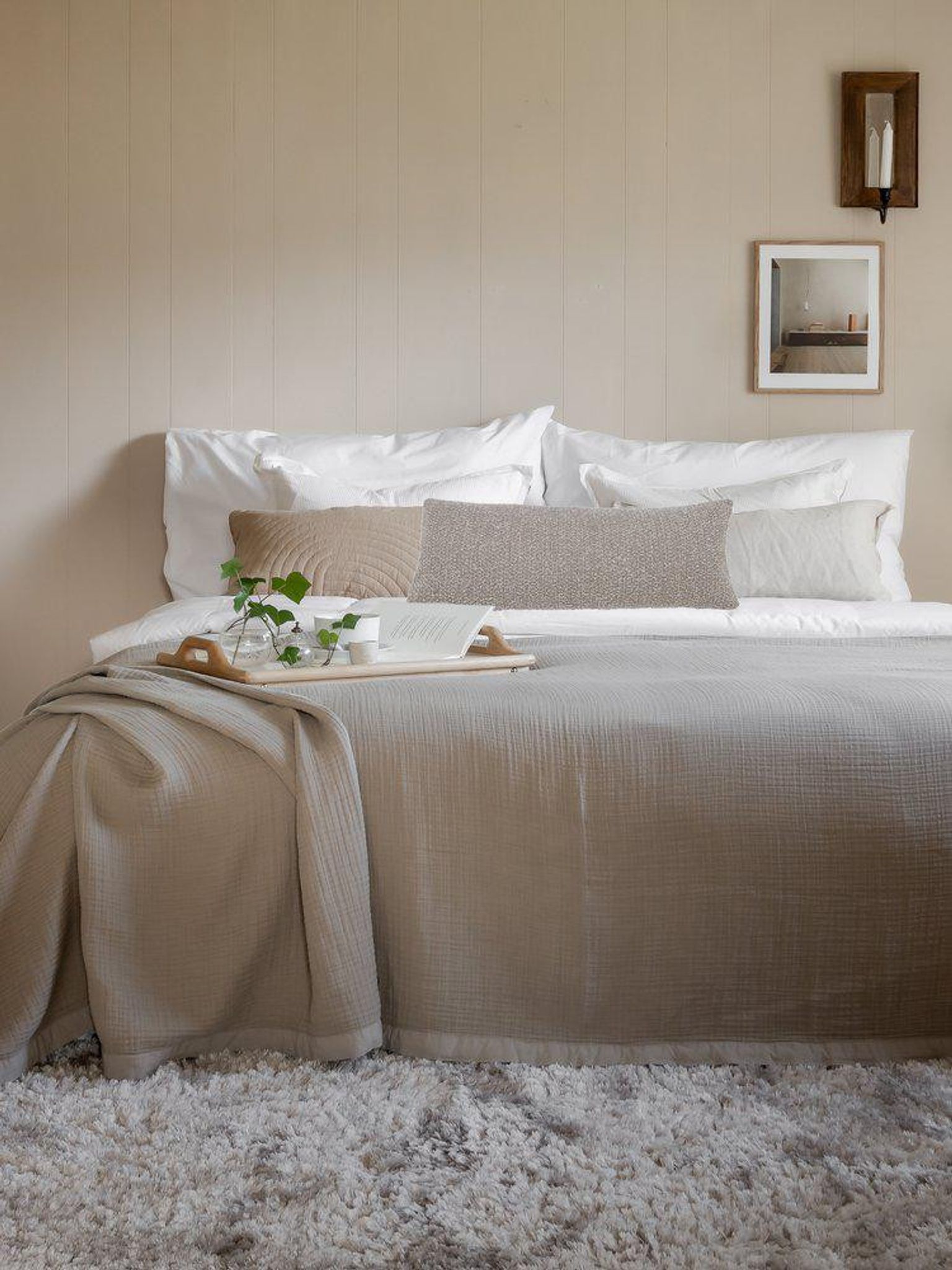 - Texturerat bouclé-tyg: Den strukturerade ytan ger djup och intresse i rummet — bra sökord: kuddfodral, bouclé kuddfodral, beige kuddfodral.