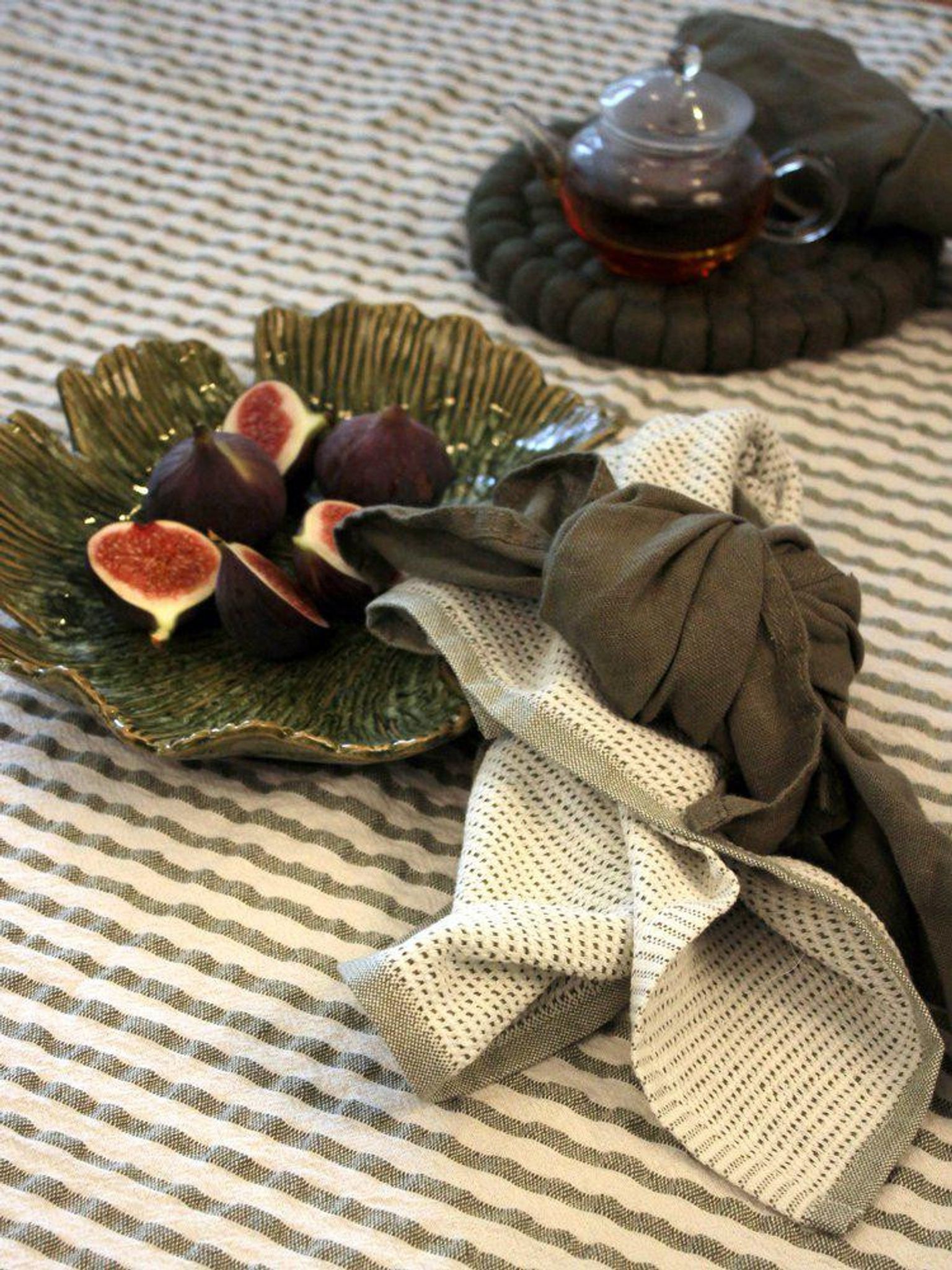 Mossa är gjord i 100% bomull och är designad för att vara både funktionell och trevlig att använda. Den mjuka känslan gör den behaglig för gäster och vardagsanvändning, samtidigt som STANDARD 100-certifieringen ger dig extra trygghet vad gäller kemikalier. Att servetten är lätt att tvätta betyder att du snabbt kan få fram rena servetter till nästa måltid, och den gröna färgen ger liv åt dukningen utan att ta över.