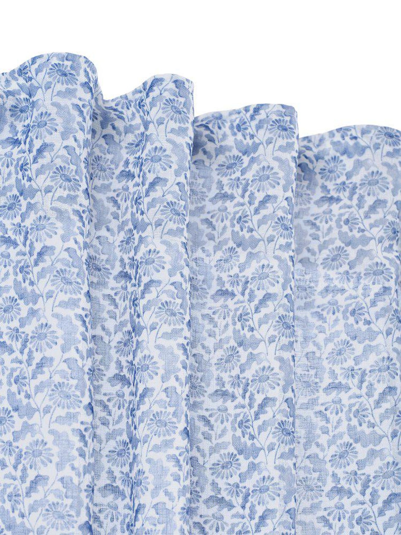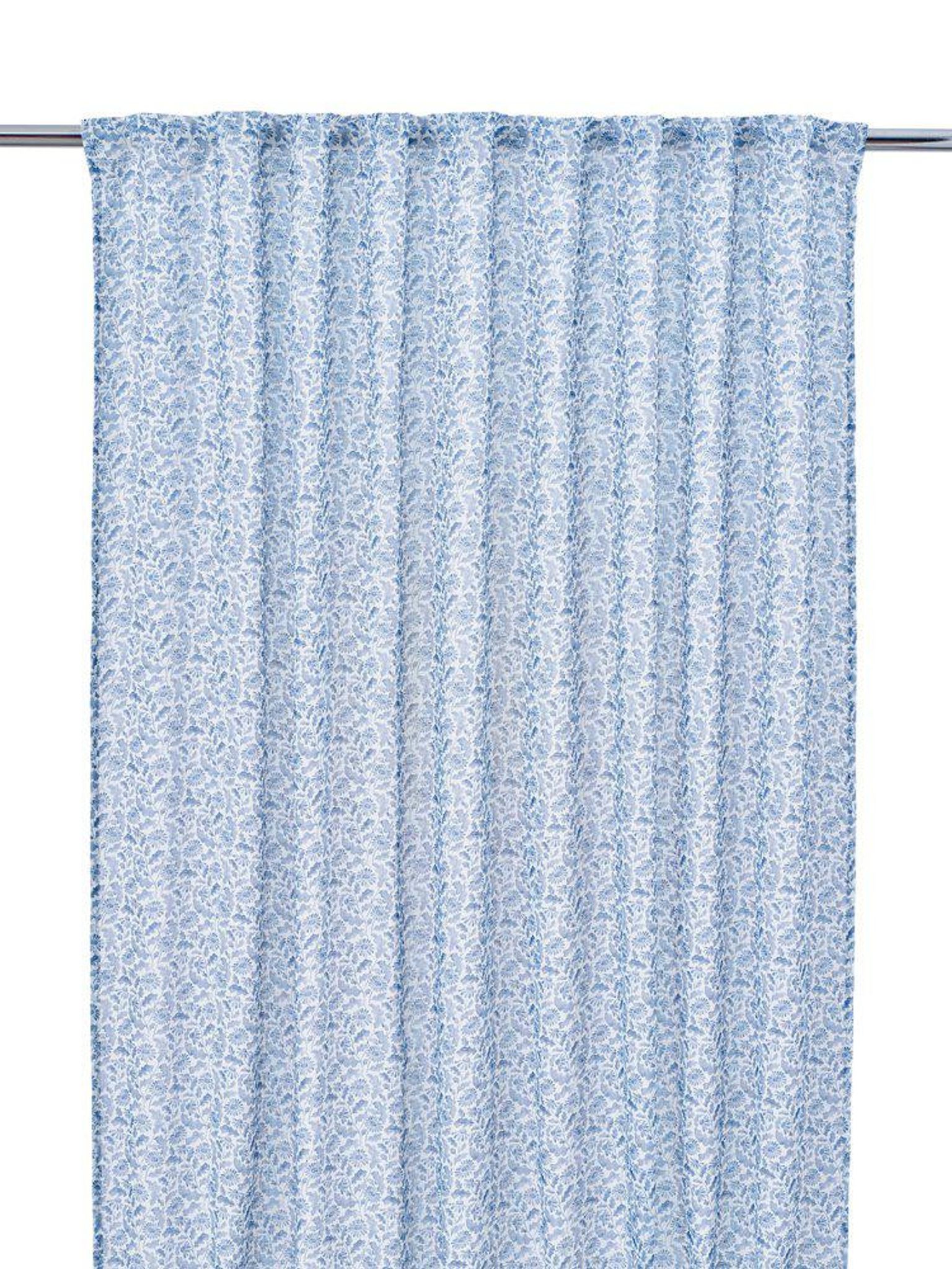Tyget är skir och låter dagsljuset sippra igenom samtidigt som det ger ett jämnare ljus i rummet — det gör det enklare för dig att skapa en behaglig stämning för vardag och vila. Gardinerna levereras som ett 2-pack och varje panel är 140x280 cm. Materialet är 100% PES och färgen är enfärgad blå med tryckt mönster.