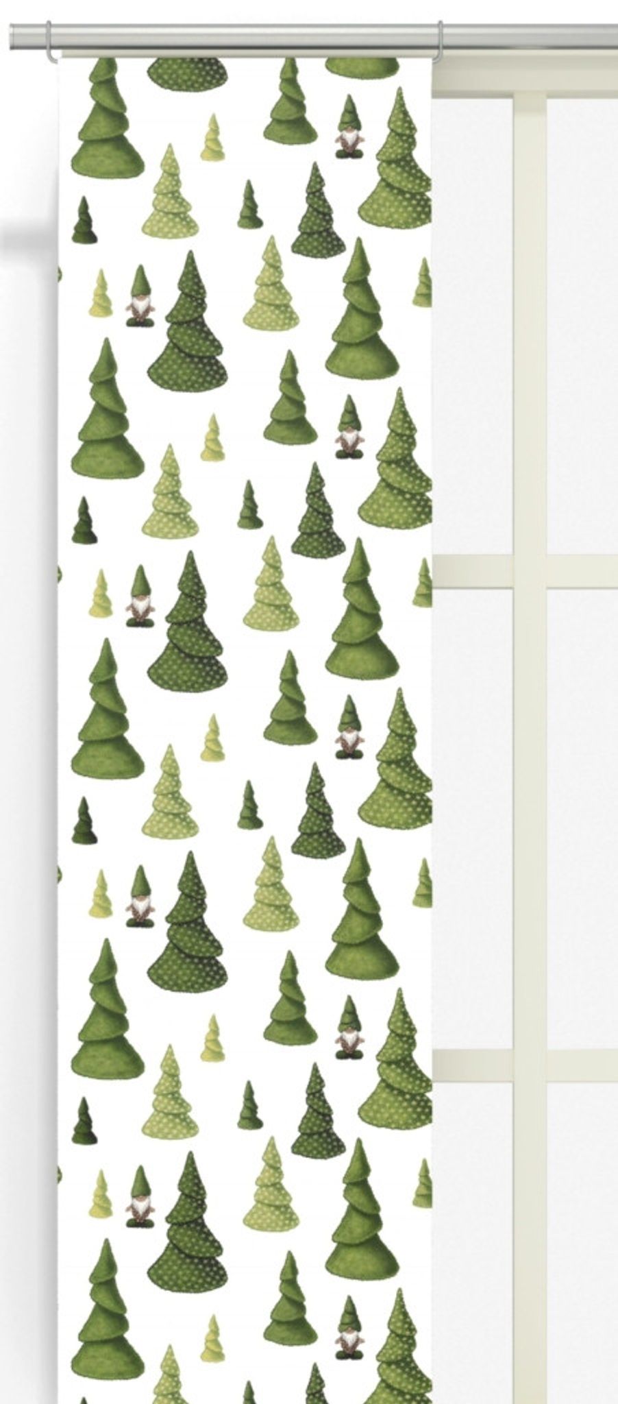 Med ett offwhite basmönster och gröna julgranar i olika nyanser skapar Tomtegömma-enheterna ett varmt ljus i rummet och fungerar bra i kök, hall eller vardagsrum.