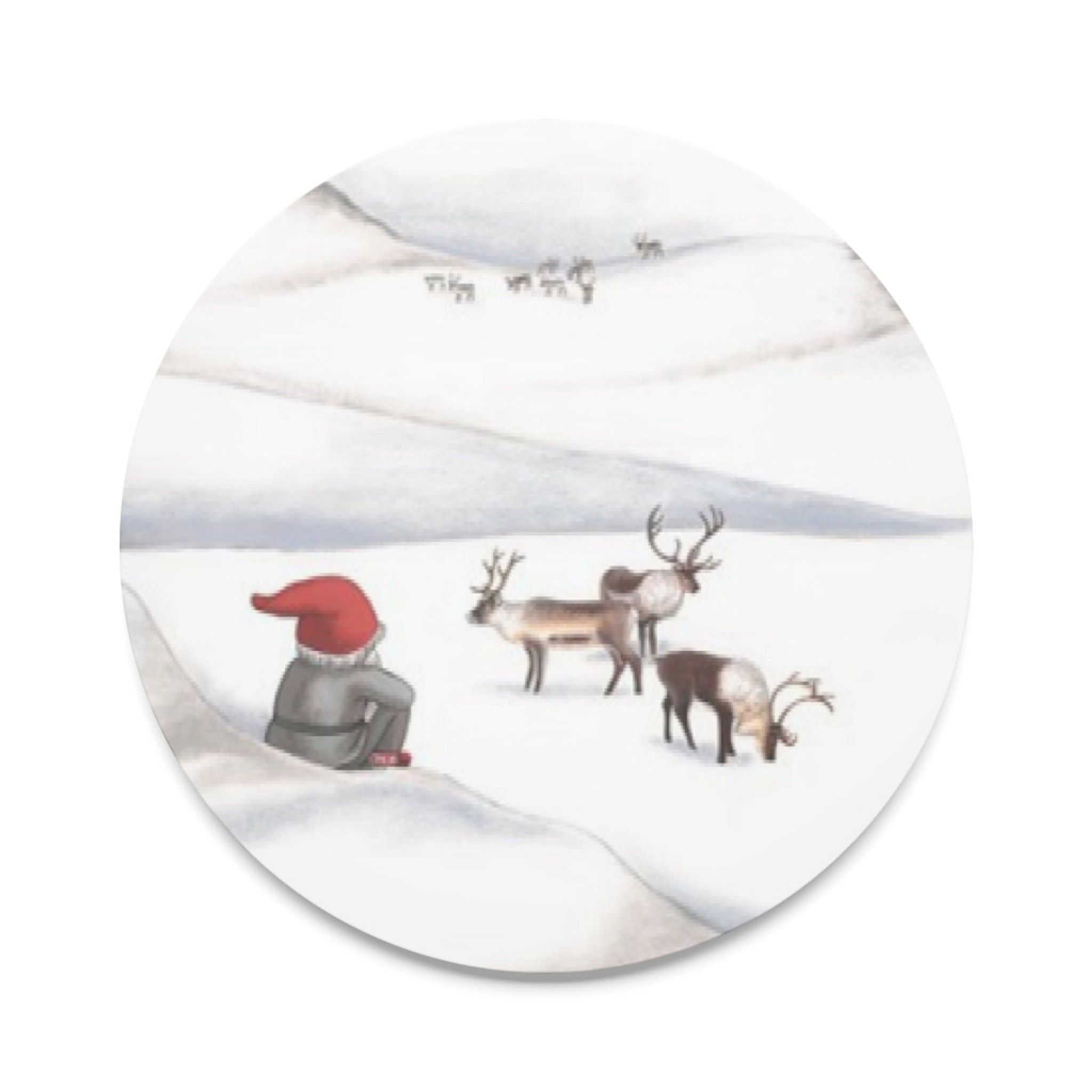 - Design: Handmålat mönster inspirerat av naturen, med tomtar och renar som skapar en mysig känsla.