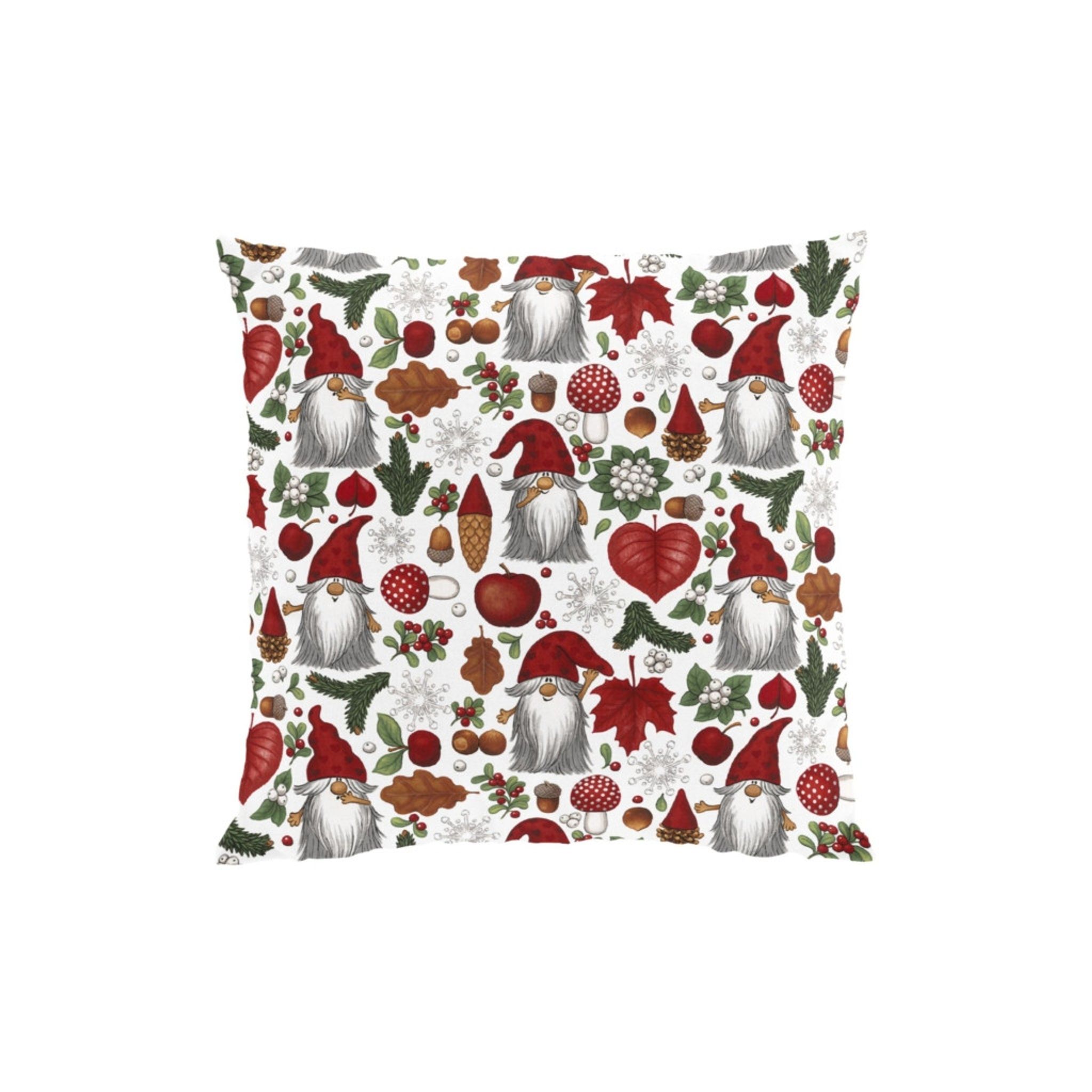 Tomteskogen offwhite/röd kuddfodral från Arvidssons Textil är en mysig juldekoration som lyser upp soffan och sängen. Det lekfulla mönstret med tomtar, löv och julmotiv ger en varm, nordisk känsla i hemmet.