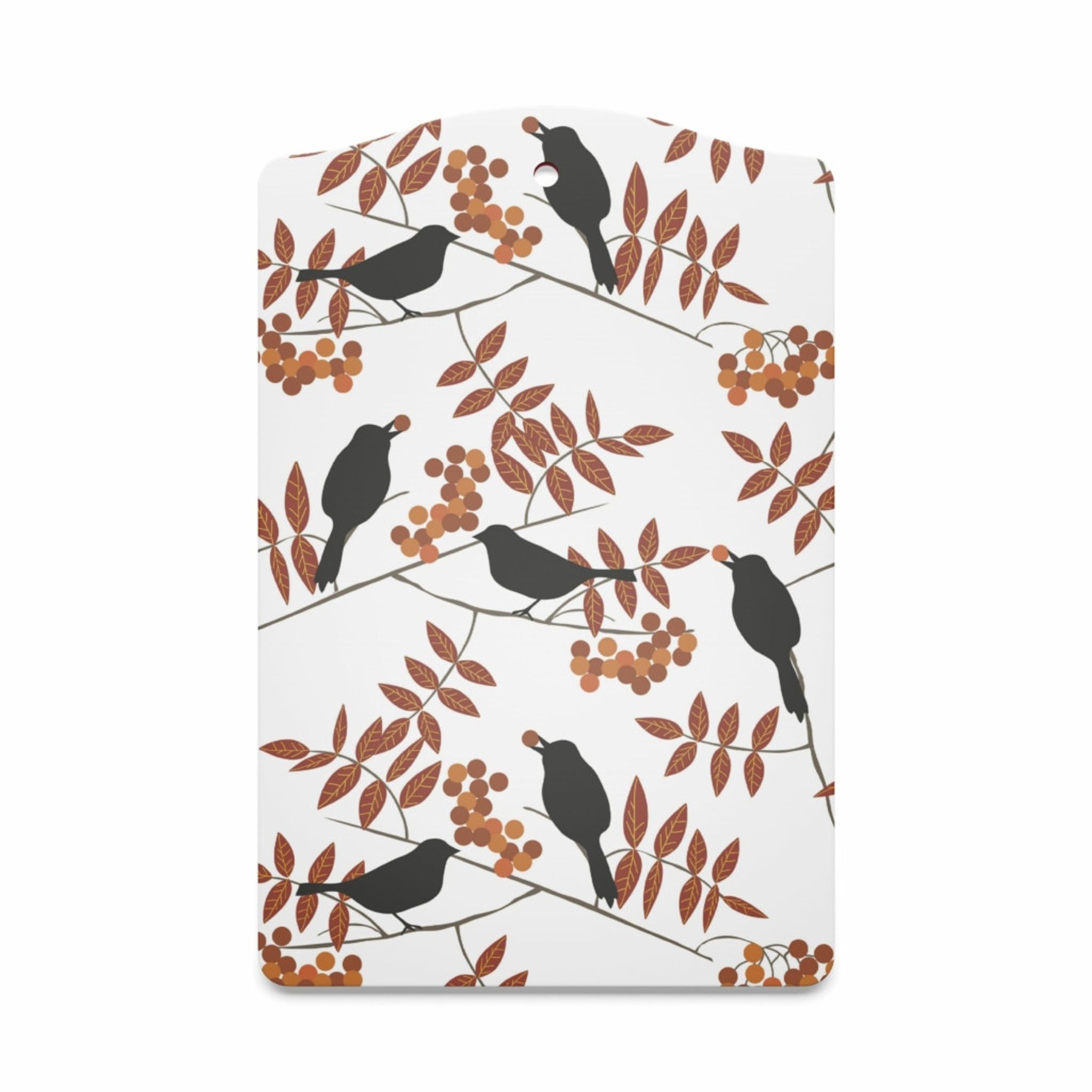 Rostfärgad serveringsbräda i MDF med ett stilrent fågelmotiv från Arvidssons Textil. Designer: Linda Svensson Edevint.