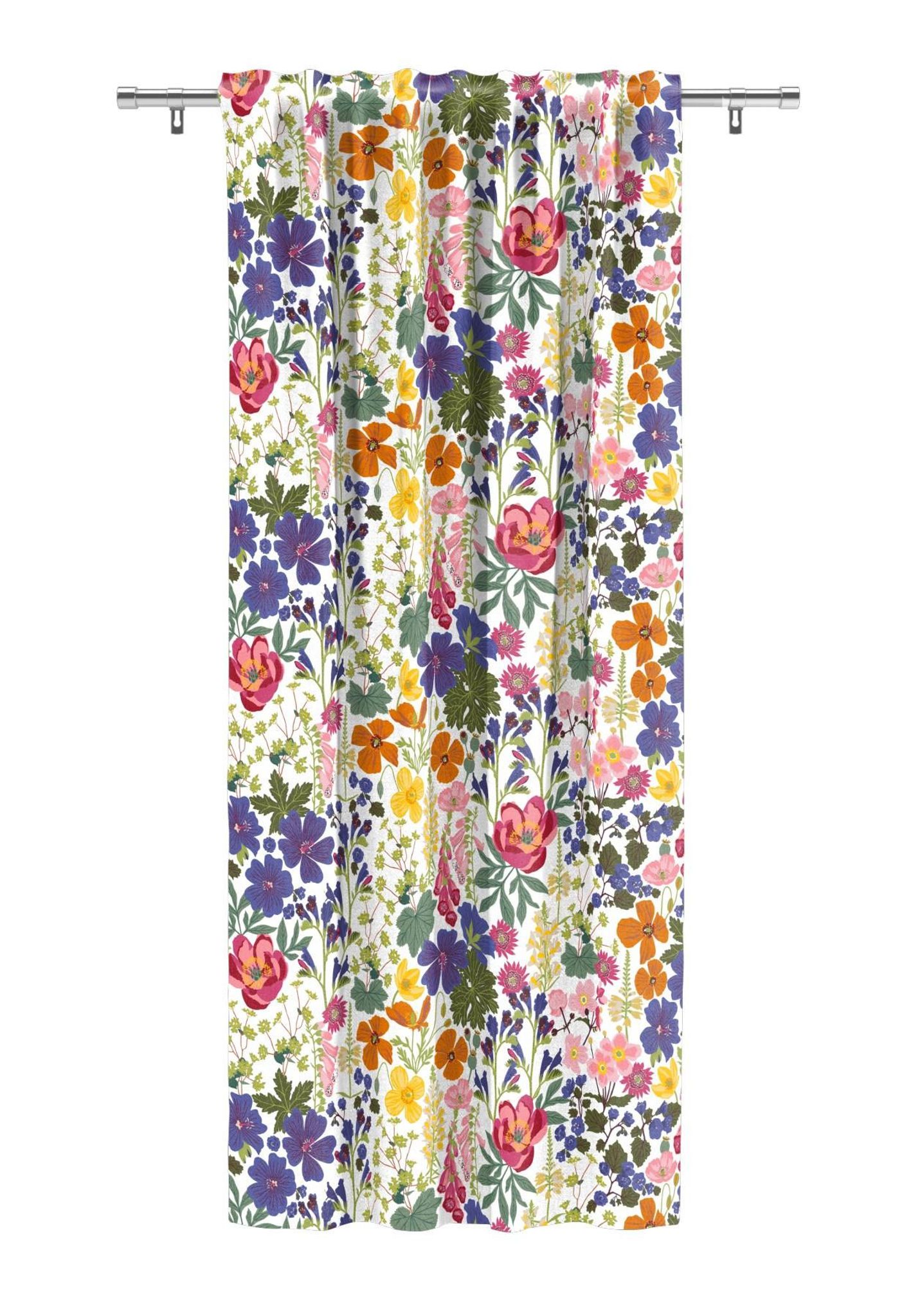 - Blomsterinspirerad print i färgerna blått, rosa, gult och grönt som passar de flesta rum.