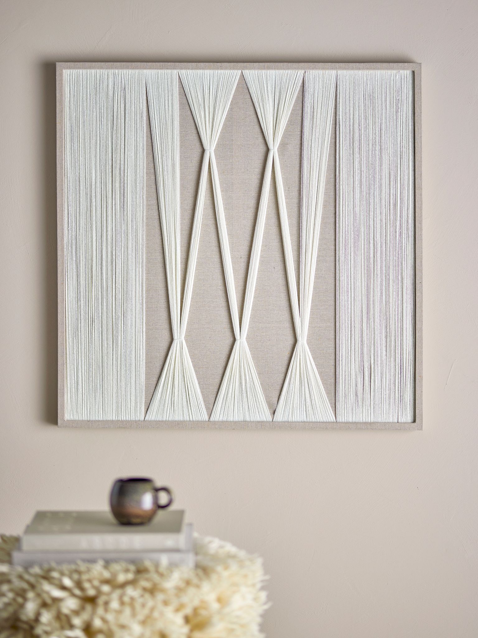Bloomingville Didder Cotton Wall Decoration är en avskalad väggdekoration i vitt och beige som ger värme och en lugn stämning i ditt hem. Den passar bra i vardagsrum, sovrum eller hall och fungerar som en diskret fokalpunkt i din heminredning.