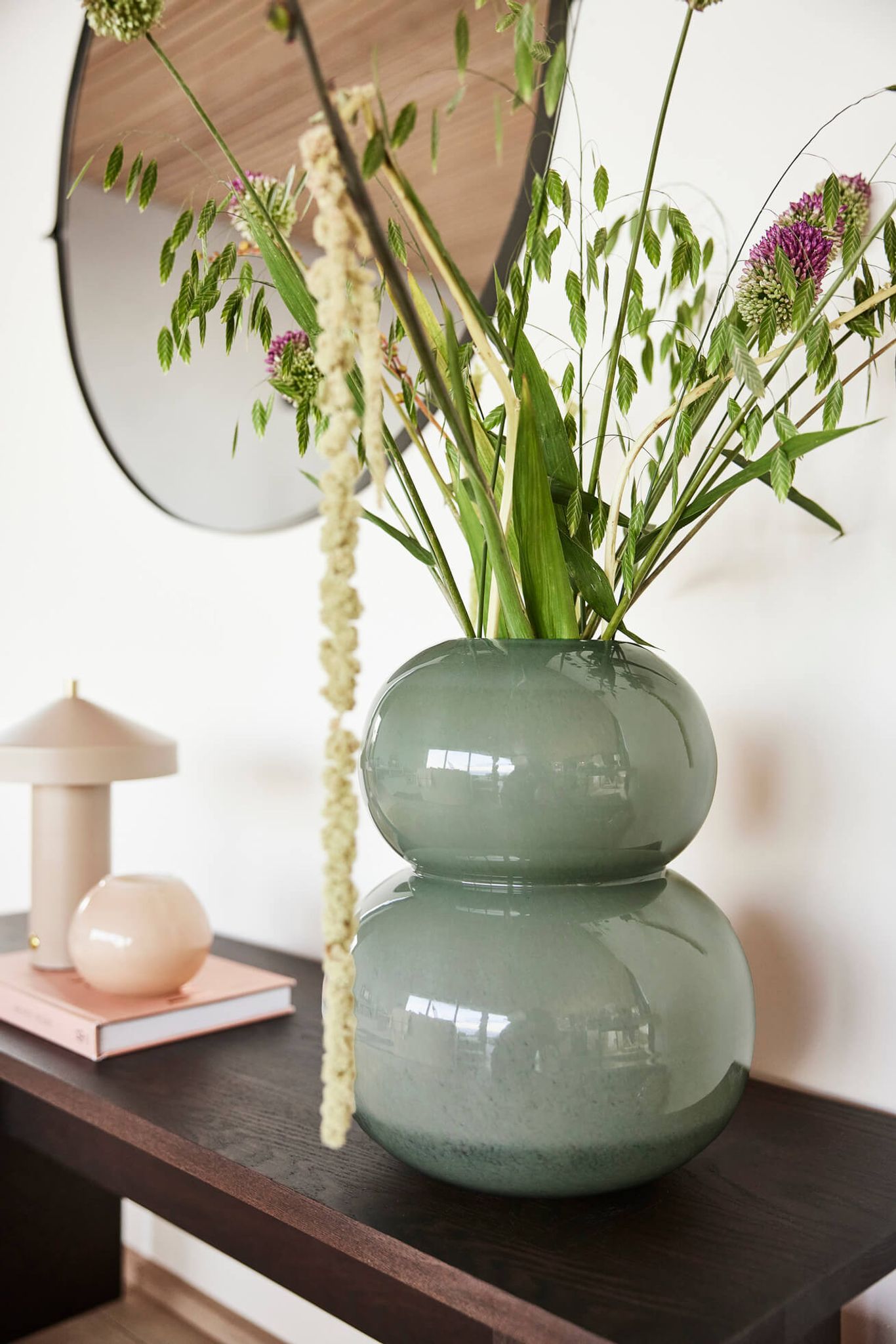 Lasi vas i jadefärgat glas, Ø25,5 cm och 30 cm hög från Oyoy Living. Snygg, praktisk och bra vas som passar ditt hem, funkar inomhus och håller länge, inte diskmaskinstålig.