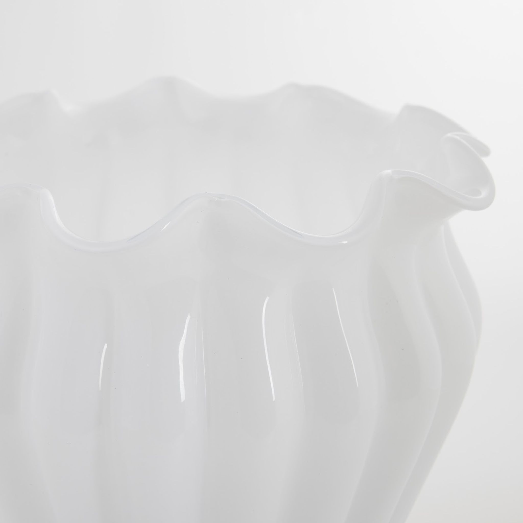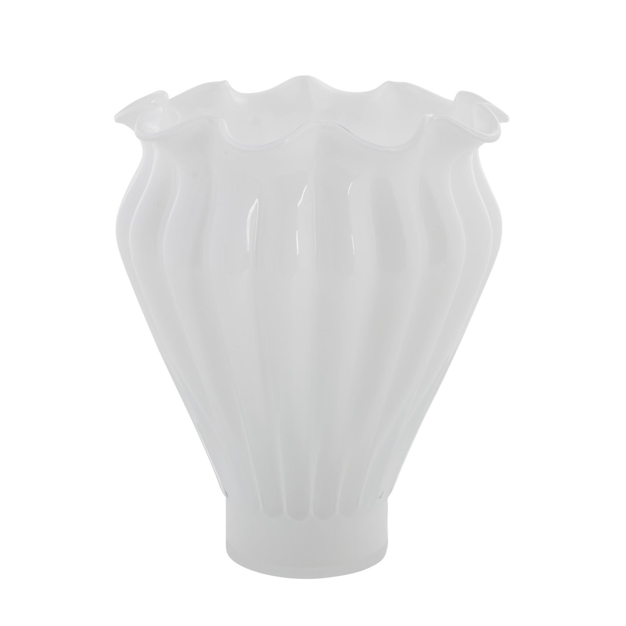 Verinne vas i vitt glas, H 28,5 cm, Ø 22,5 cm från Lene Bjerre. Snygg, praktisk glasvas som håller länge, passar på ditt bord, funkar med snittblommor och är bra.