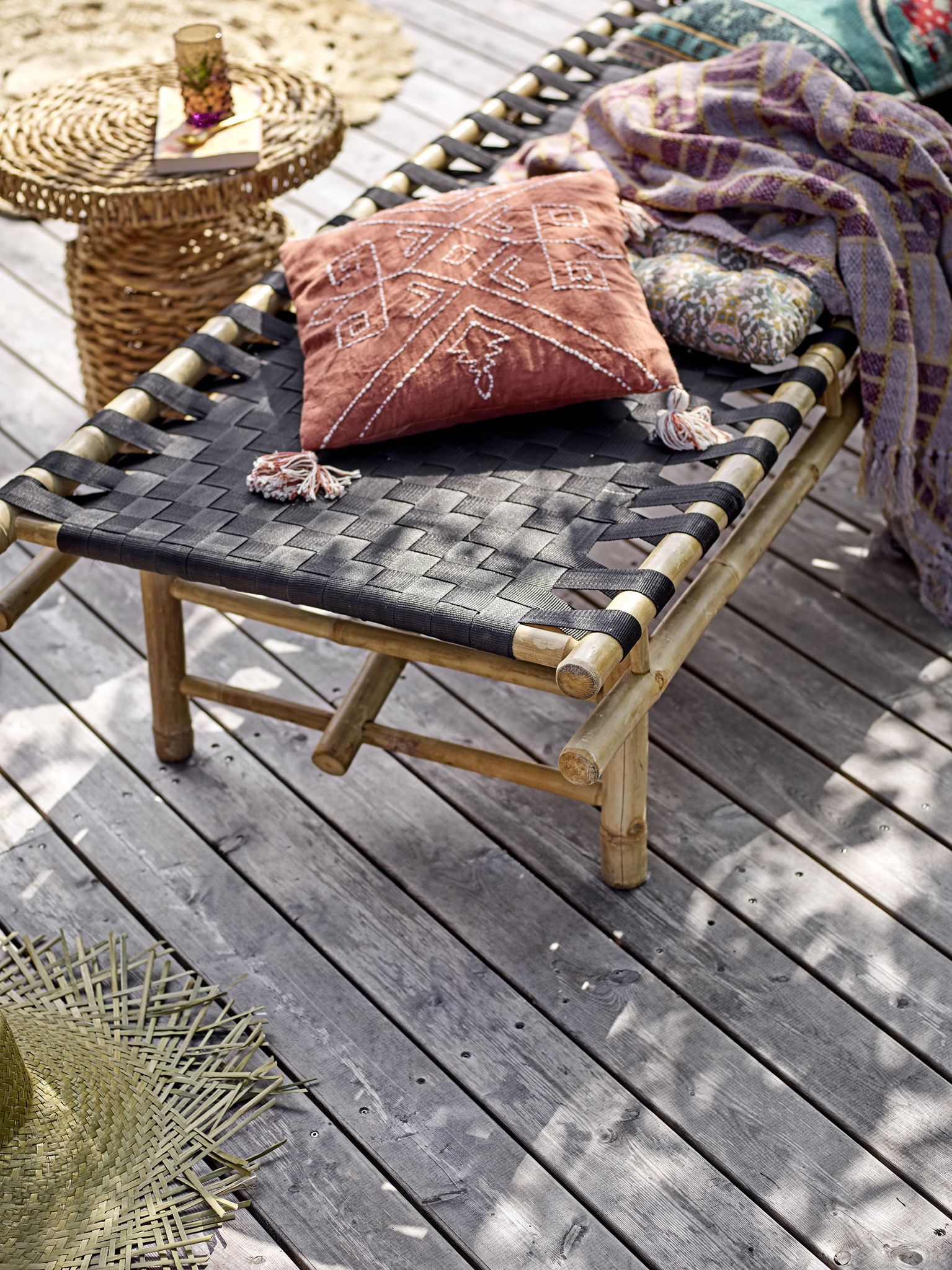 Vida Dagbädd Svart Bambu 249 cm – Bloomingville. Stilren dagbädd i bambu med svart vävband som passar i vardagsrum, gästrum eller uterum.