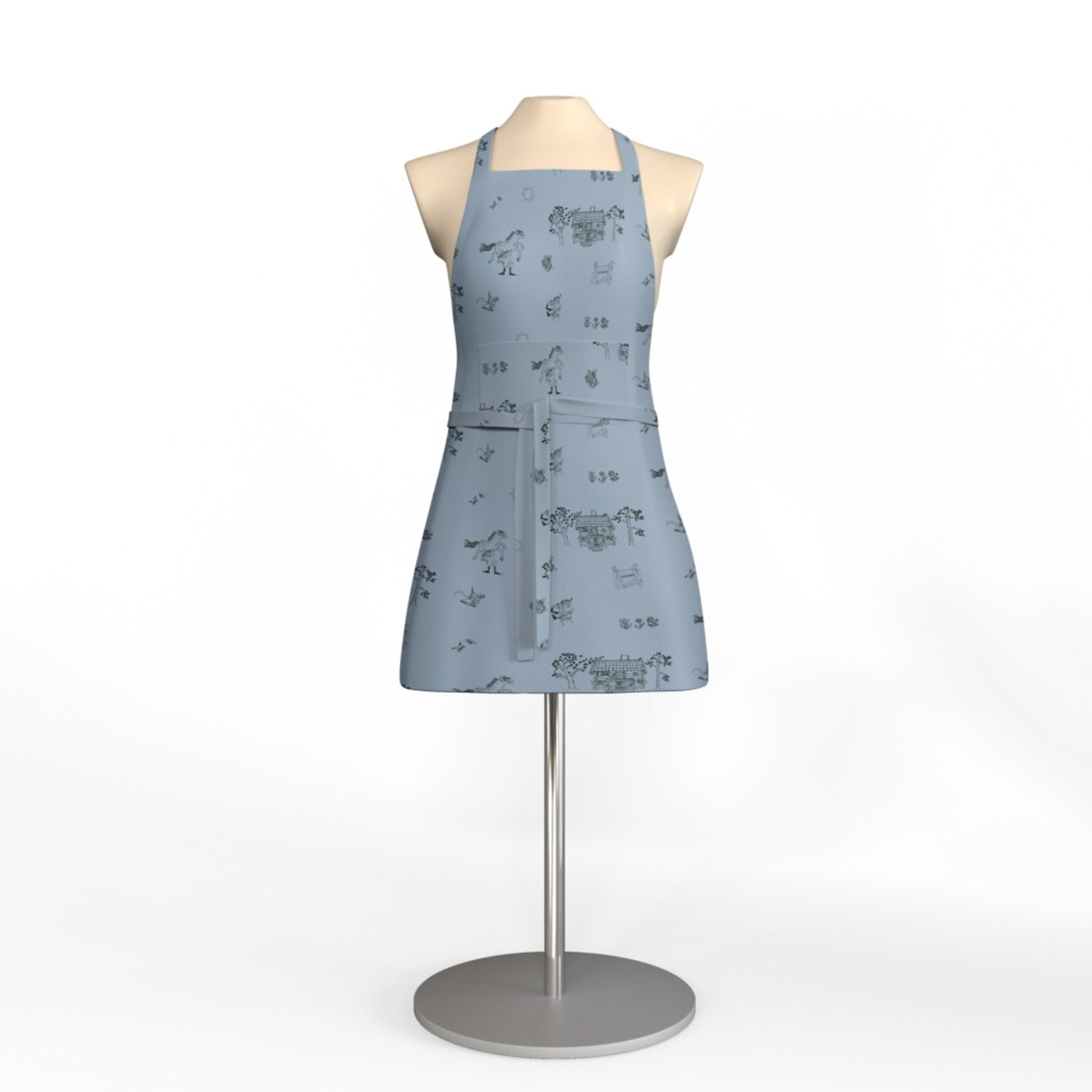 Villa Villekulla blå förkläde med ficka från Arvidssons Textil är ett praktiskt och stilrent bomullsförkläde som gör matlagning och bakning roligare. Den blå färgen och det lekfulla motivet ger köket personlighet samtidigt som fickan håller dina köksredskap nära till hands.