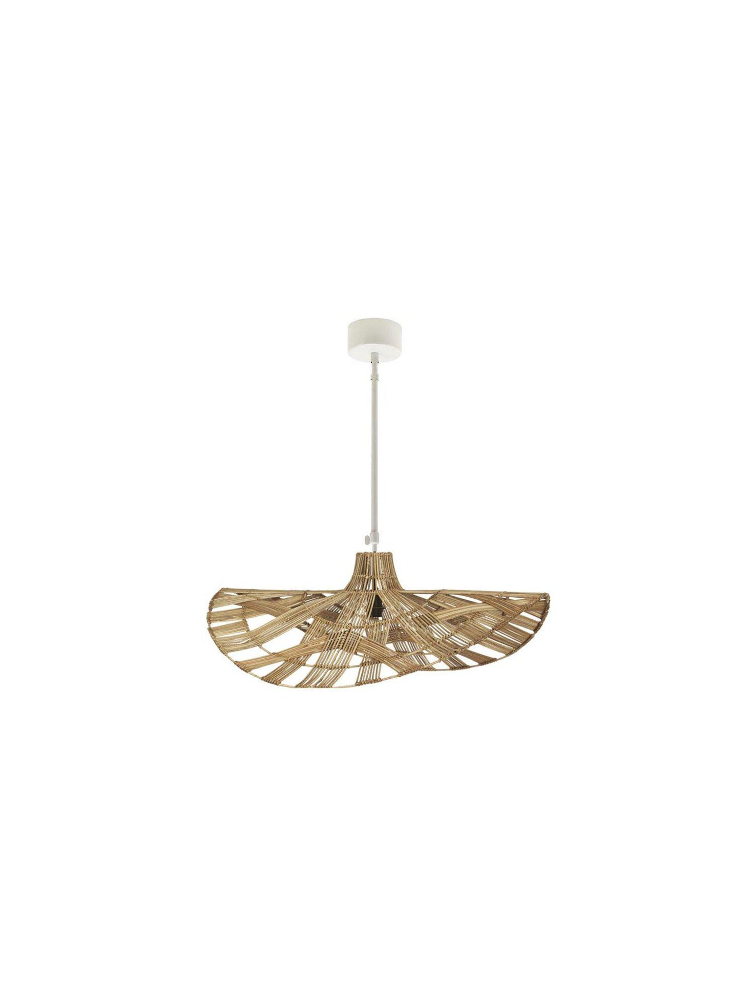 - Material: Flätad rotting och vit metall takkopp