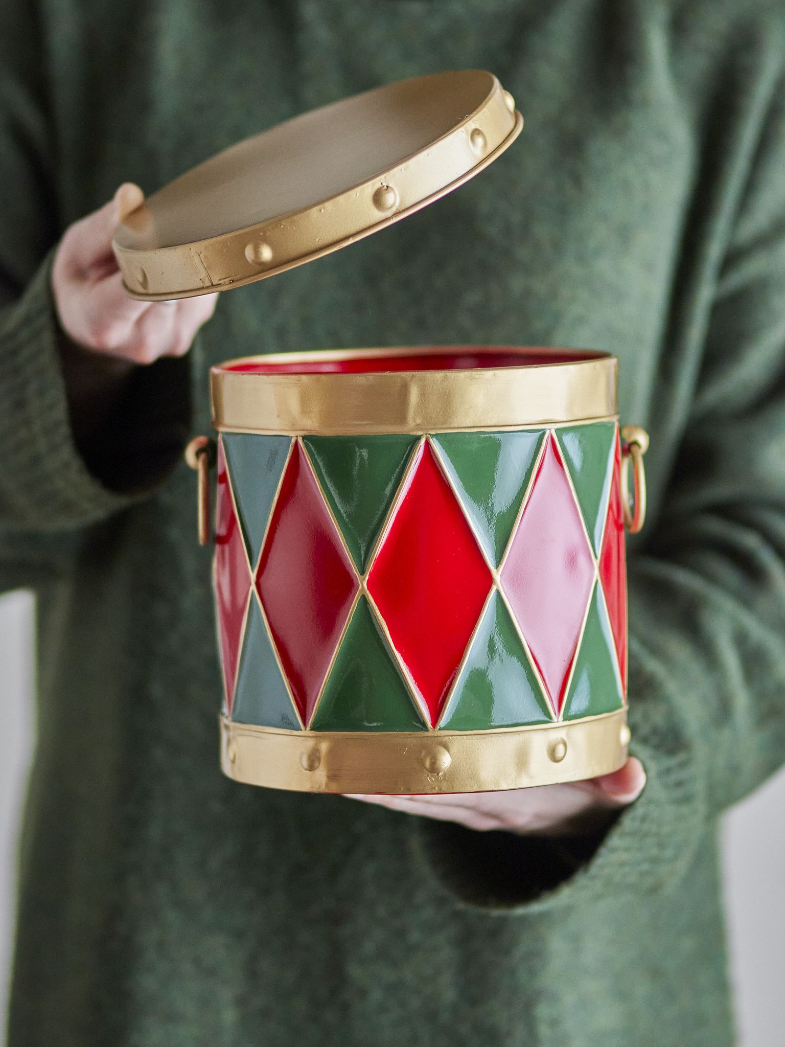 - Röd design: Klar röd färg och klassisk trummform som ger julstämning i hemmet.